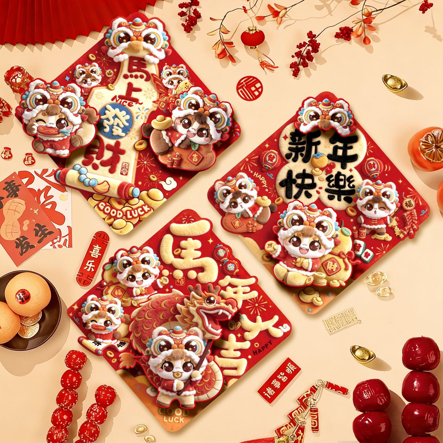 2026马年春节福字立体植绒双层烫金福字门贴立体背胶对联春联批货