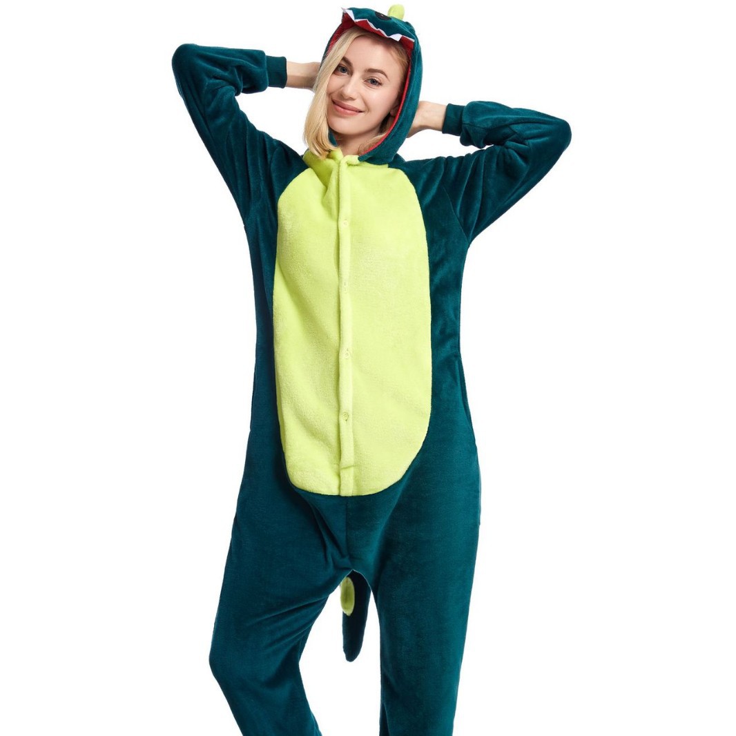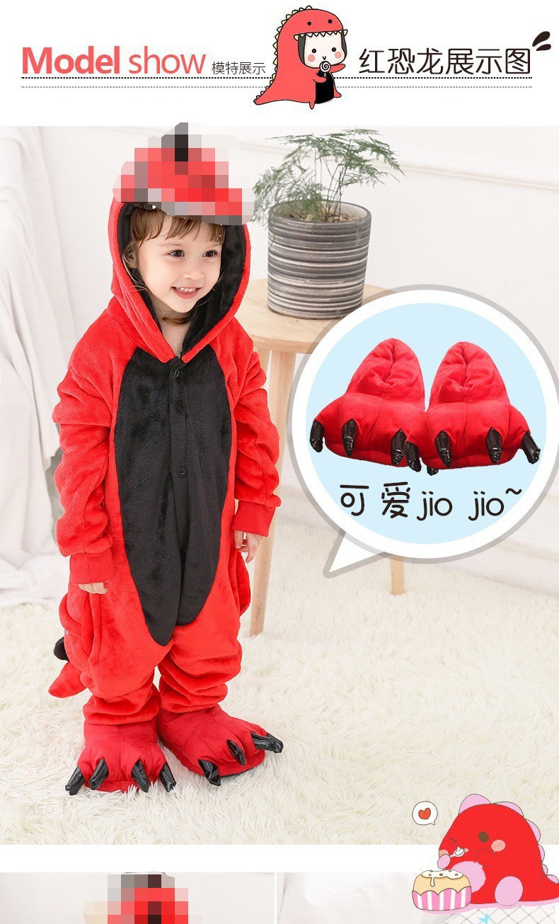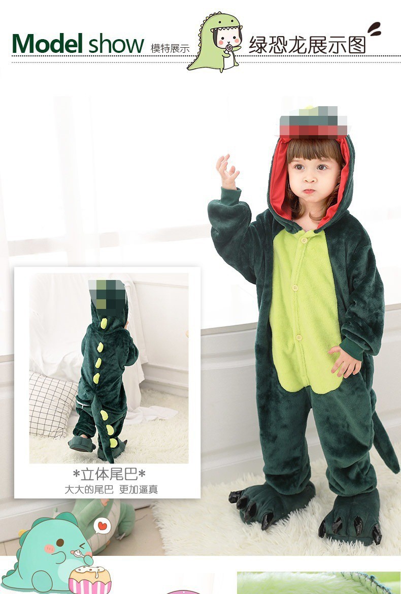 恐竜パジャマ 秋冬 フランネル 動物 ホームウェア クロスボーダー ワンピース 漫画コスチューム 親子服 フード付き