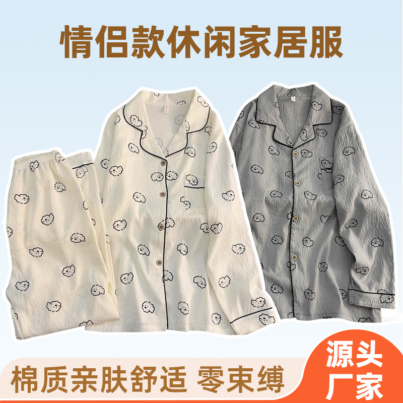 情侣睡衣开衫长袖家居服云朵棉快乐小狗情侣装睡衣套装宽松休闲