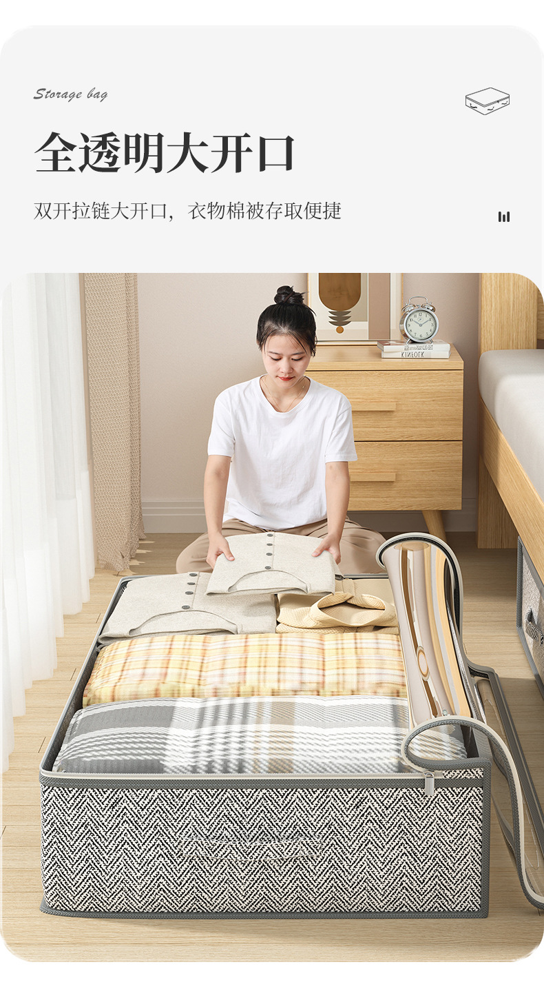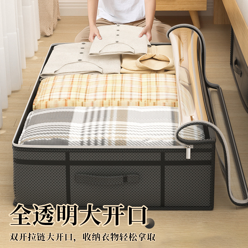 ベッド底不織布収納袋グレードアップ超大容量大開口デザイン透明衣類収納袋ダブルファスナー