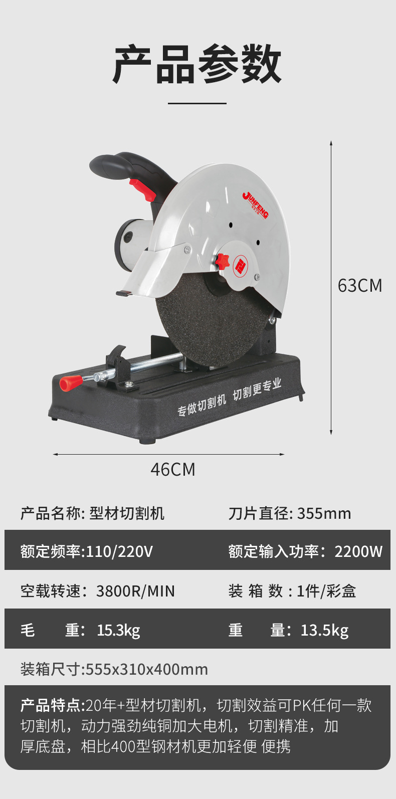 型材切断機355MMハイパワー界アルミ機多機能木材金属ステンレス220V卓上チェーンソー
