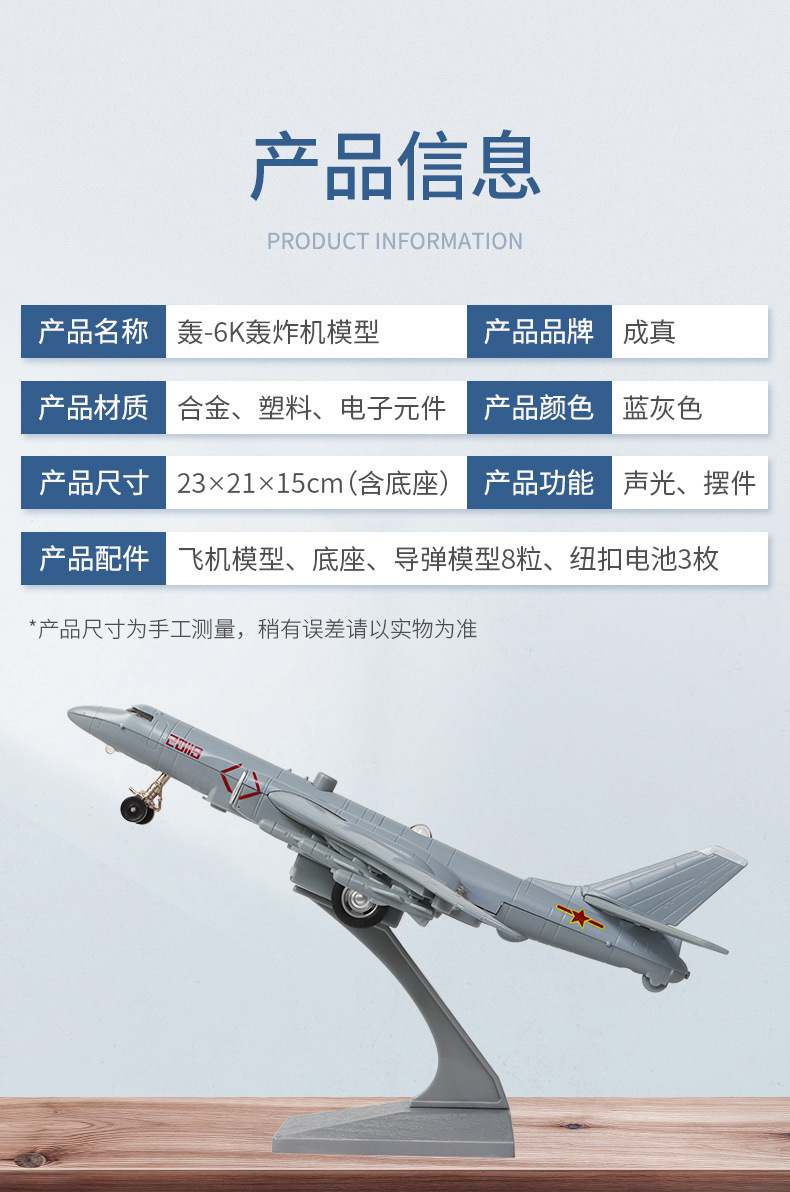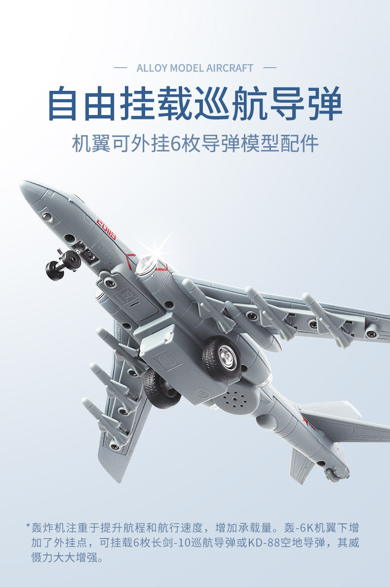 1/1500轰6K轰炸机仿真合金声光回力儿童飞机航空军事模型摆件男孩