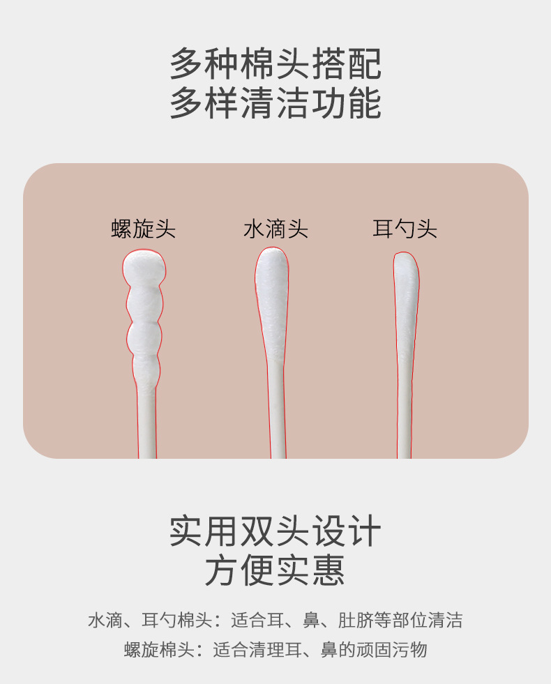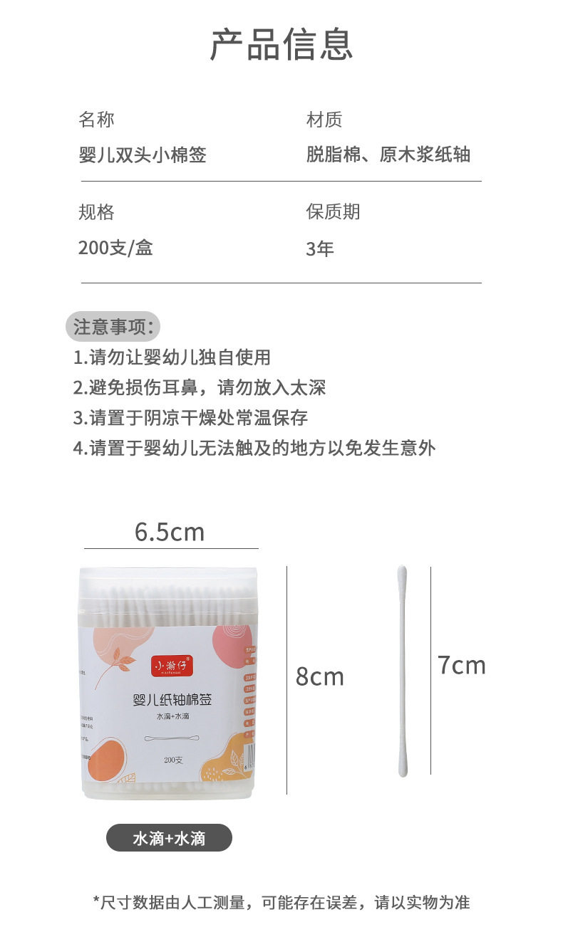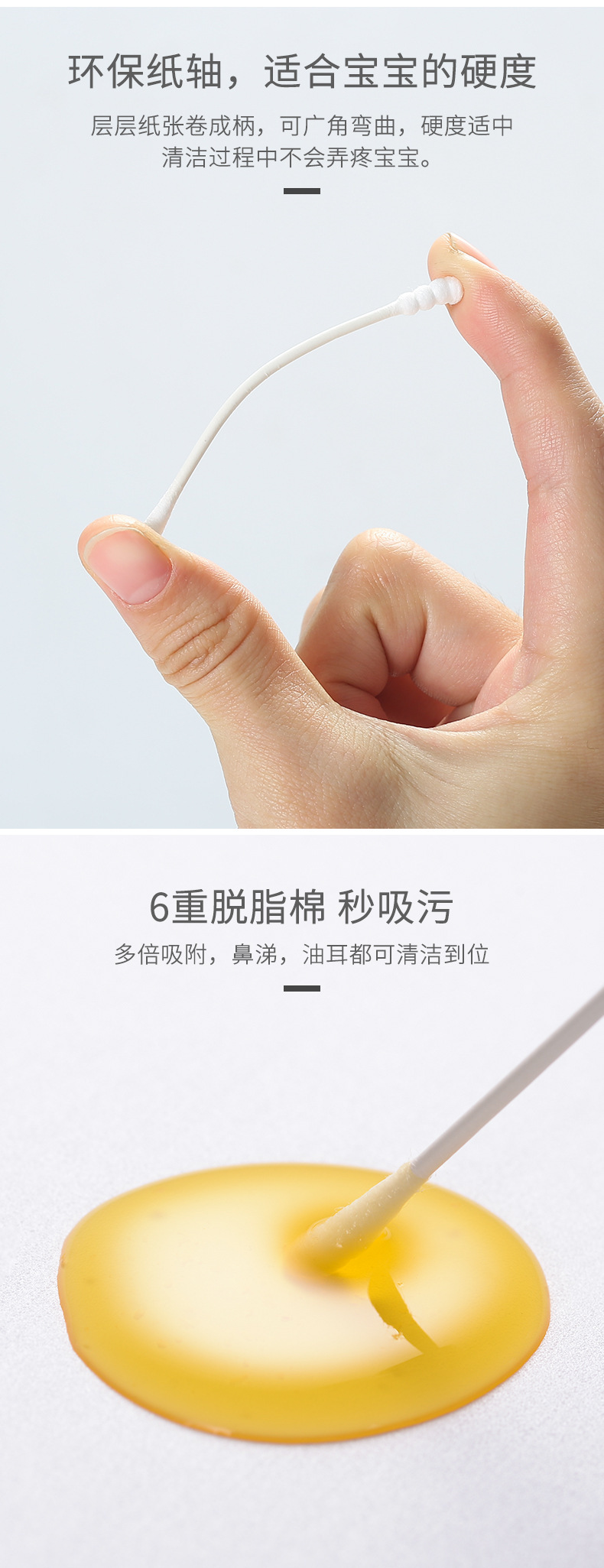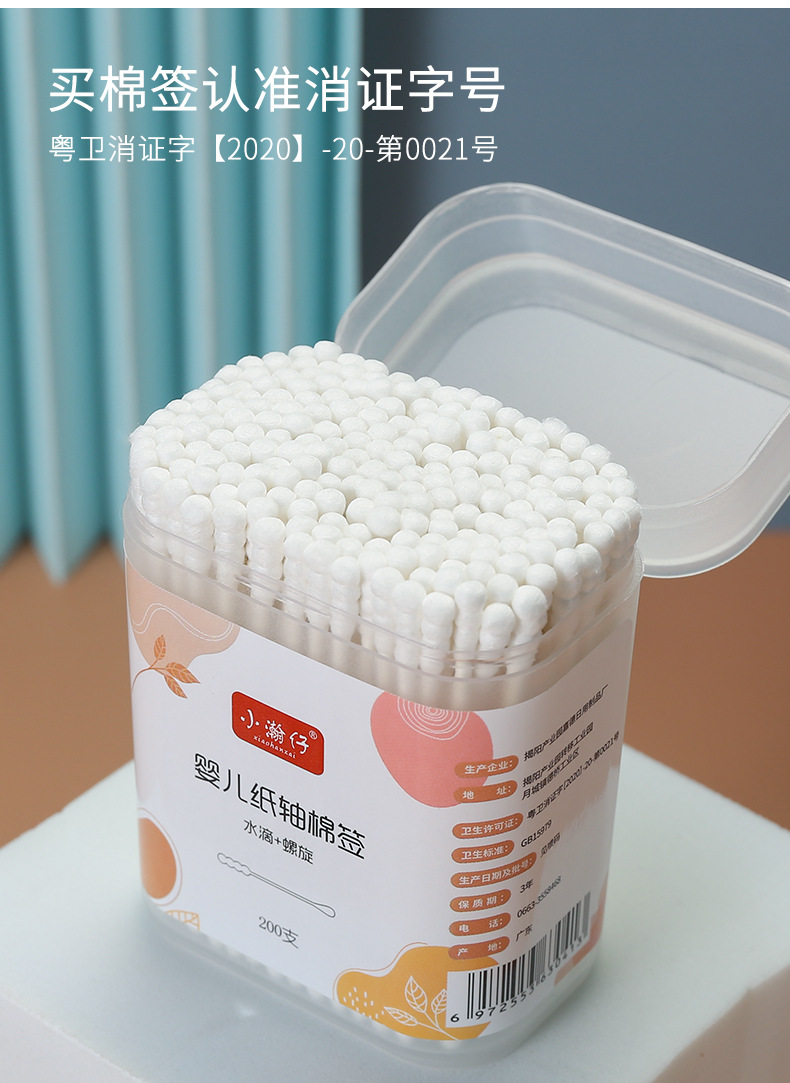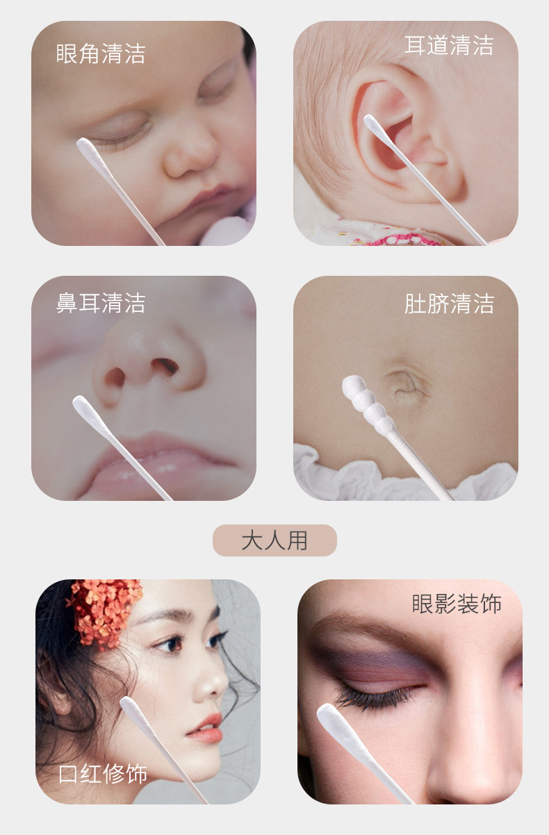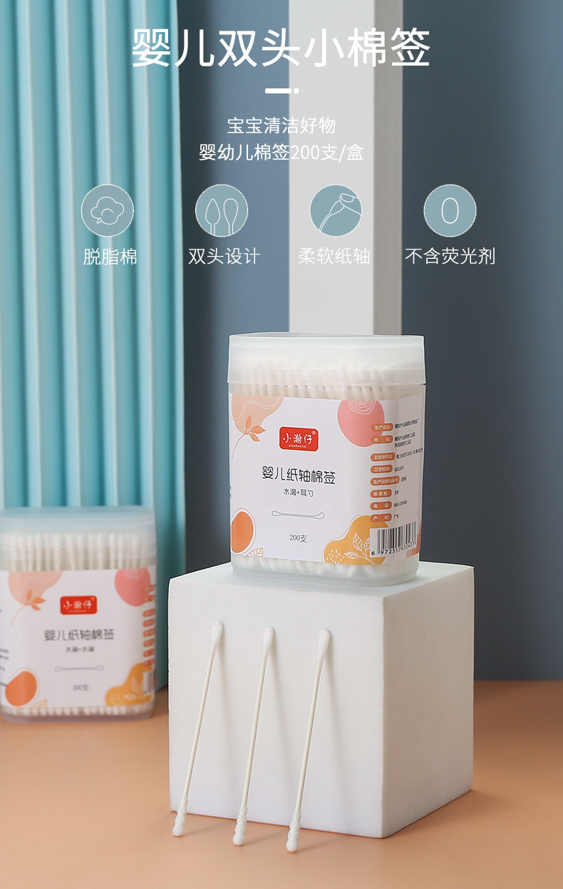 小翰仔双頭綿棒使い捨て乳児綿棒家庭用臍清潔耳綿棒200/400本