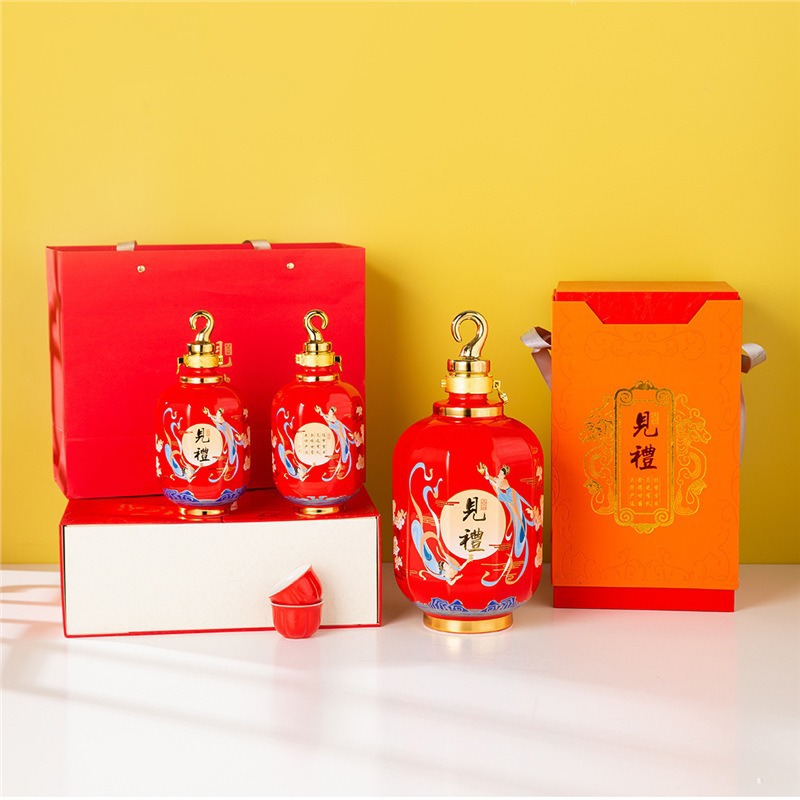 景徳鎮陶磁器酒壇1斤ギフトボックスセットラベル付き高颜値密封酒瓶家庭用泡酒保存酒