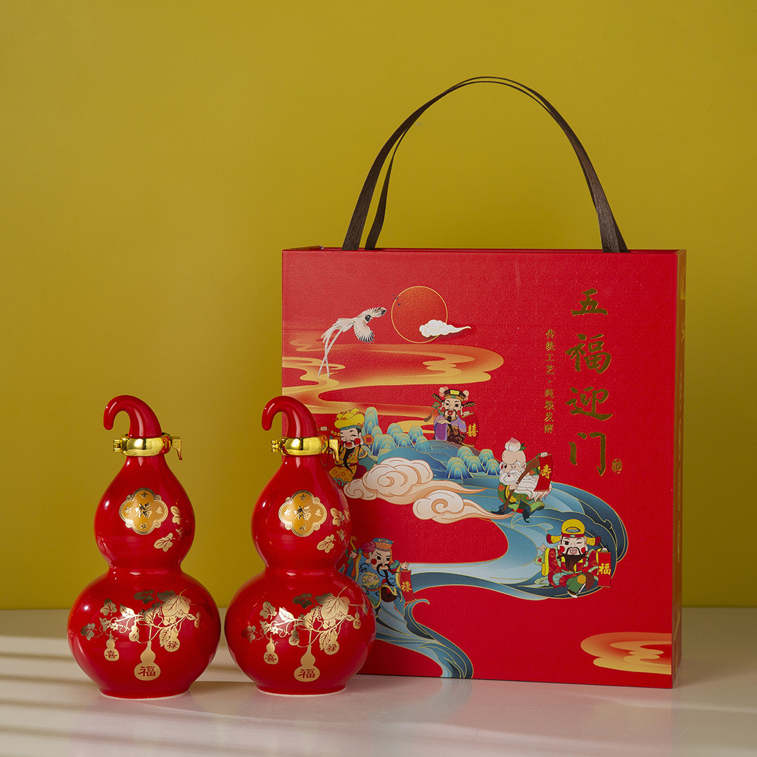 景徳鎮セラミックワインボトル家庭用 0.5kg パックギフト高級空ワインボトルカスタマイズ可能なひょうたんワインボトル包装付き