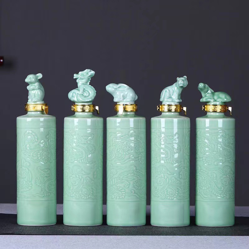 空酒瓶景徳鎮陶磁器1斤半直筒青釉十二生肖家庭用密封酒壺酒壇