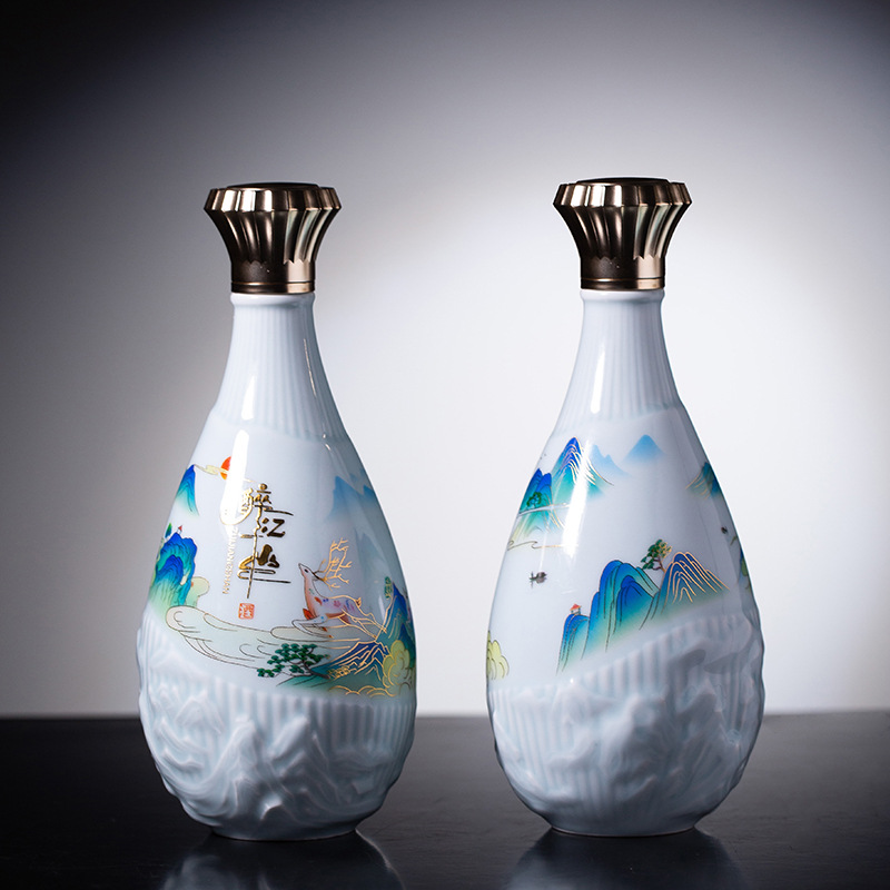 景徳鎮陶磁酒瓶空瓶高級フルセットラベル付き高級感白酒包装付き0.5kg個セットカスタム