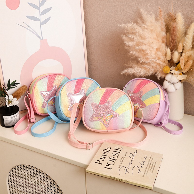 2025新型子供用シングルショルダーバッグカラー虹付きシングルショルダーバッグ