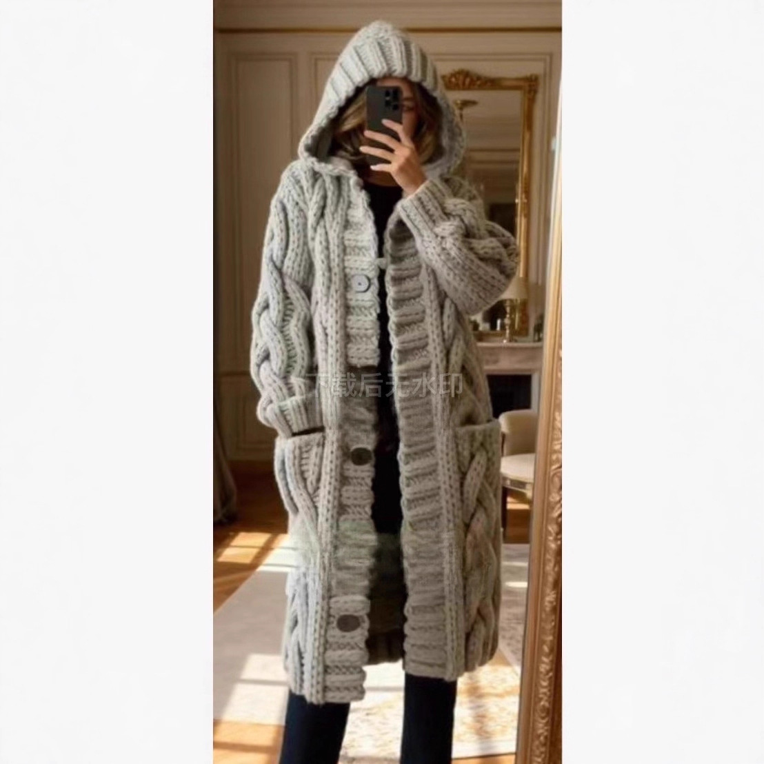 2025欧美女装新款连帽口袋开衫大码毛衣外套亚马逊跨境女装针织衫