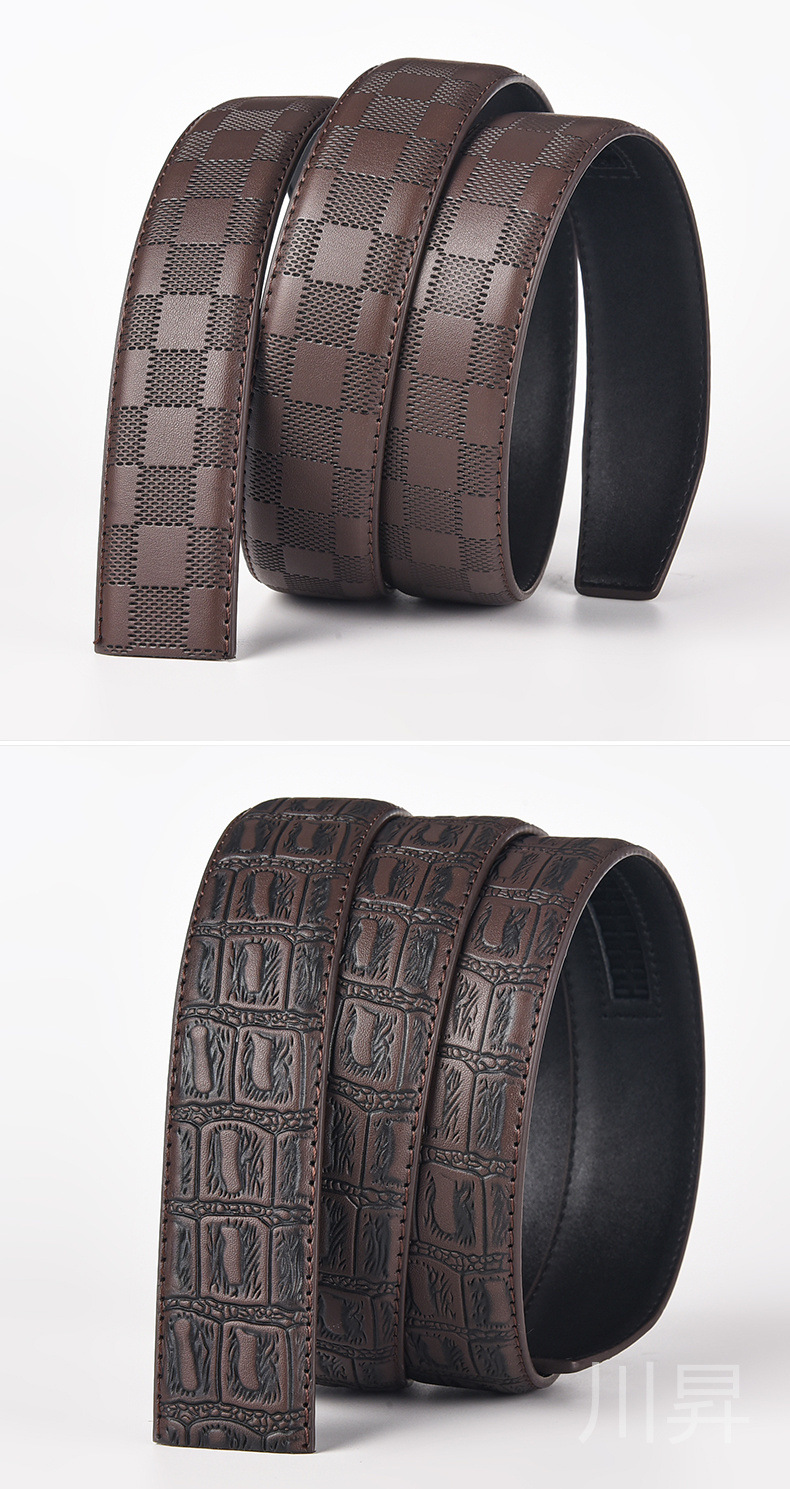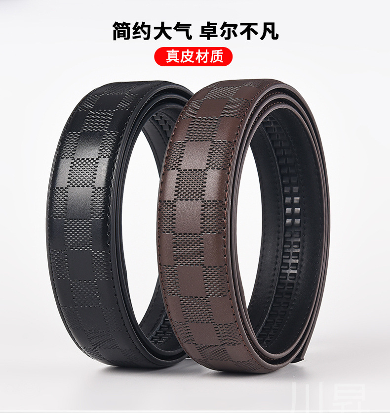 首なしのベルトの牛革の男性の格子縞の本革のベルトは首なしの男性の美杜莎の青年のバックルなしのズボンのベルトの滑らかなバックルです。