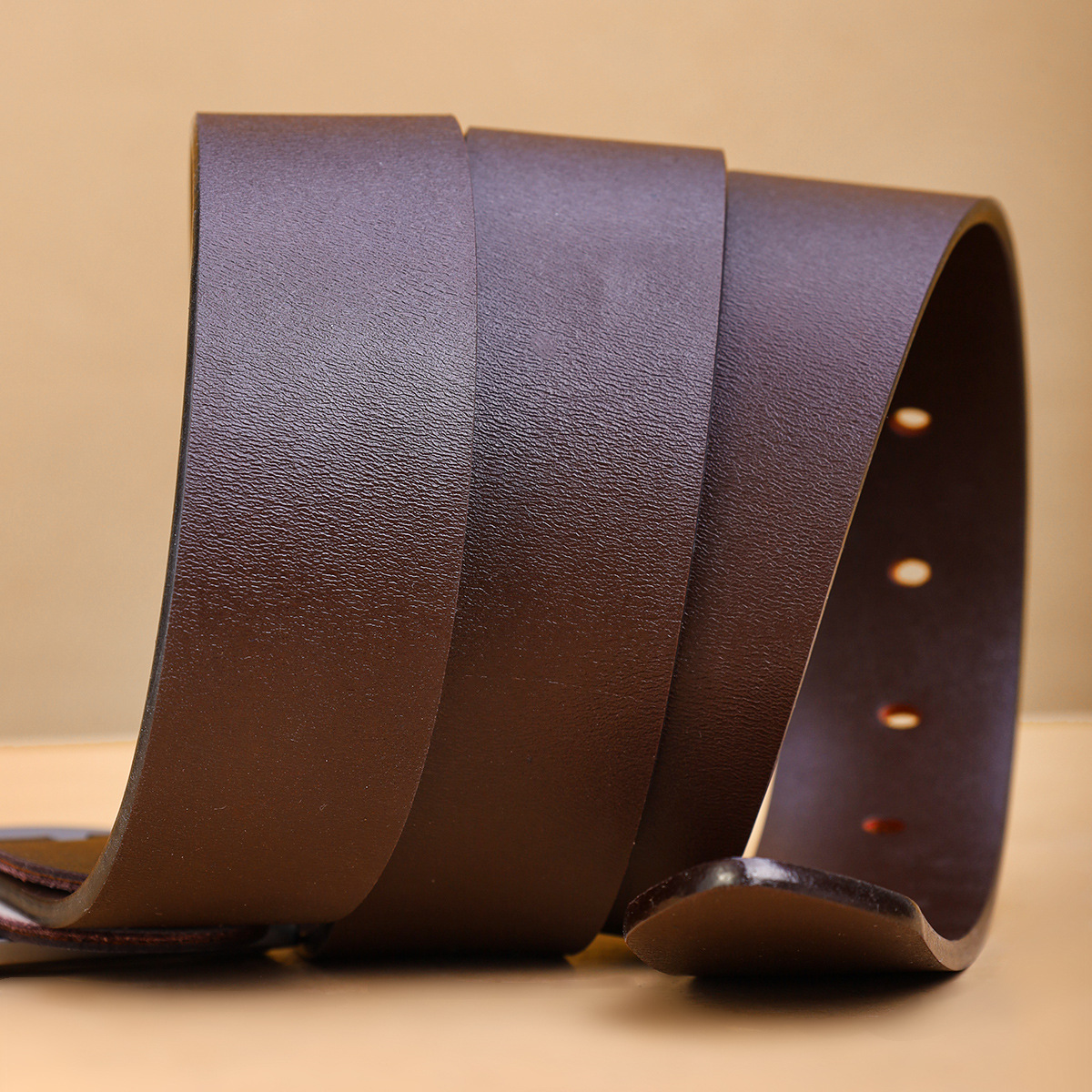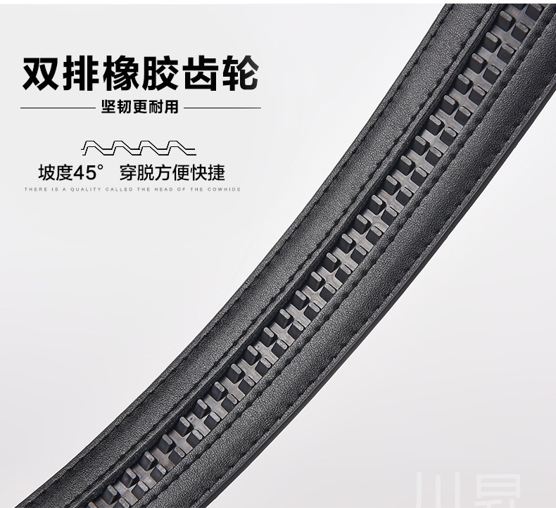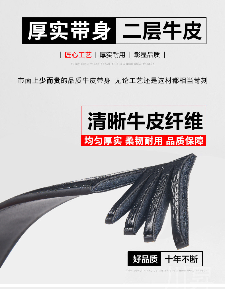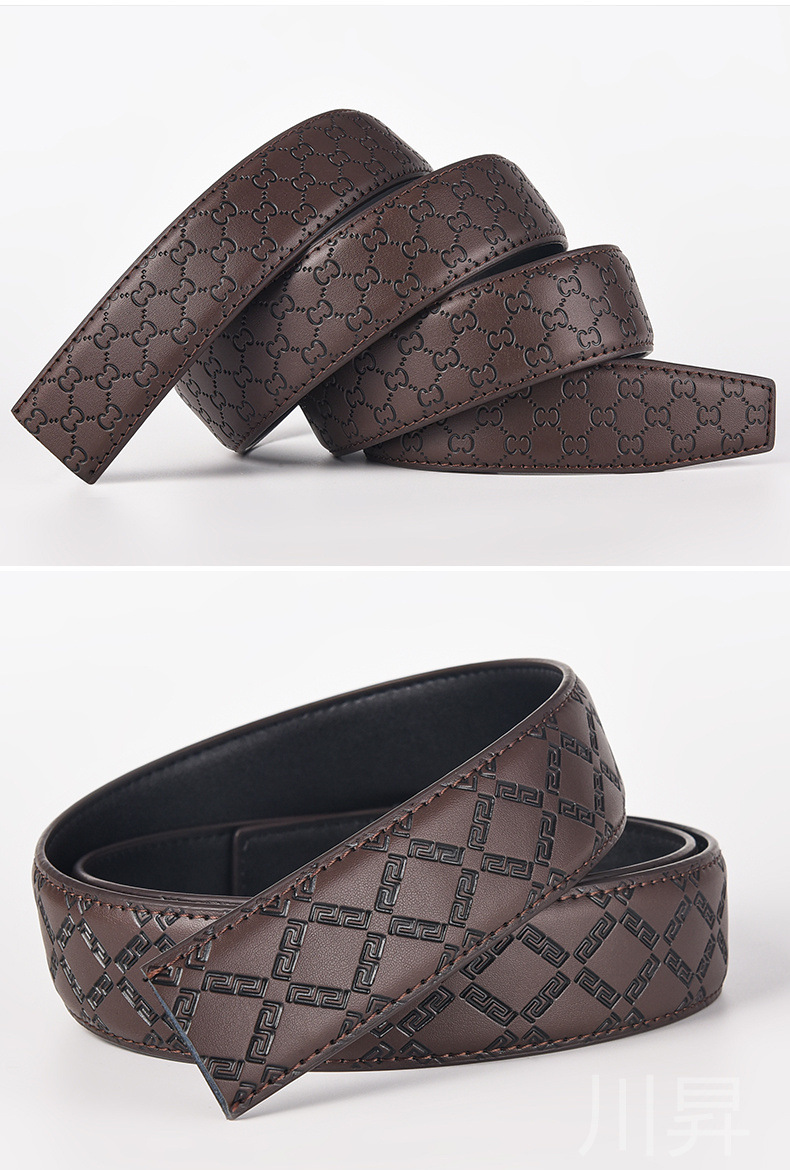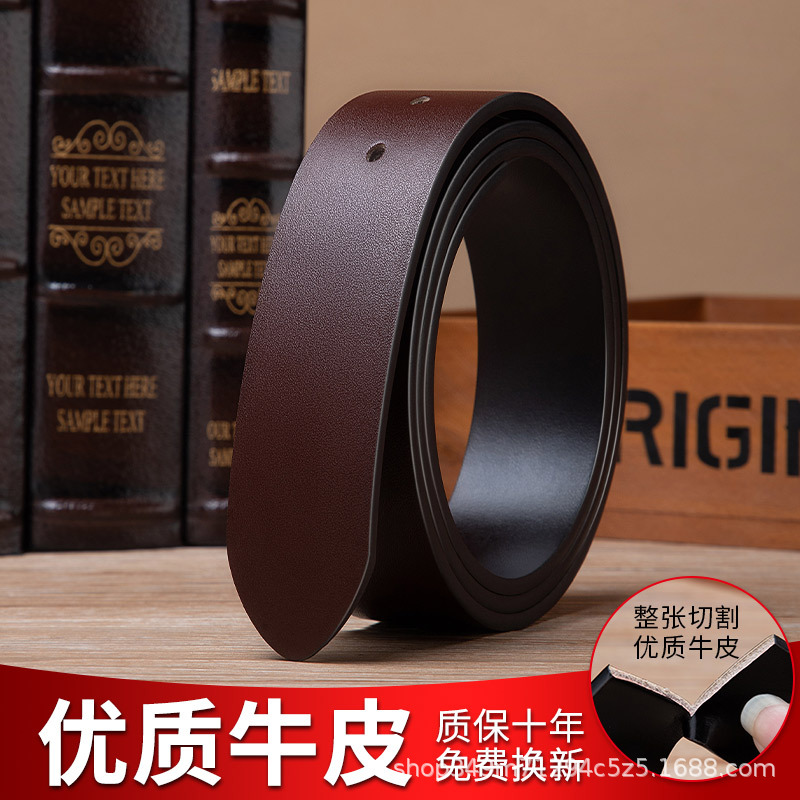 男性3.8幅二層牛革ベルト体100紋ボタンなし本革ベルト両面メーカー卸売り