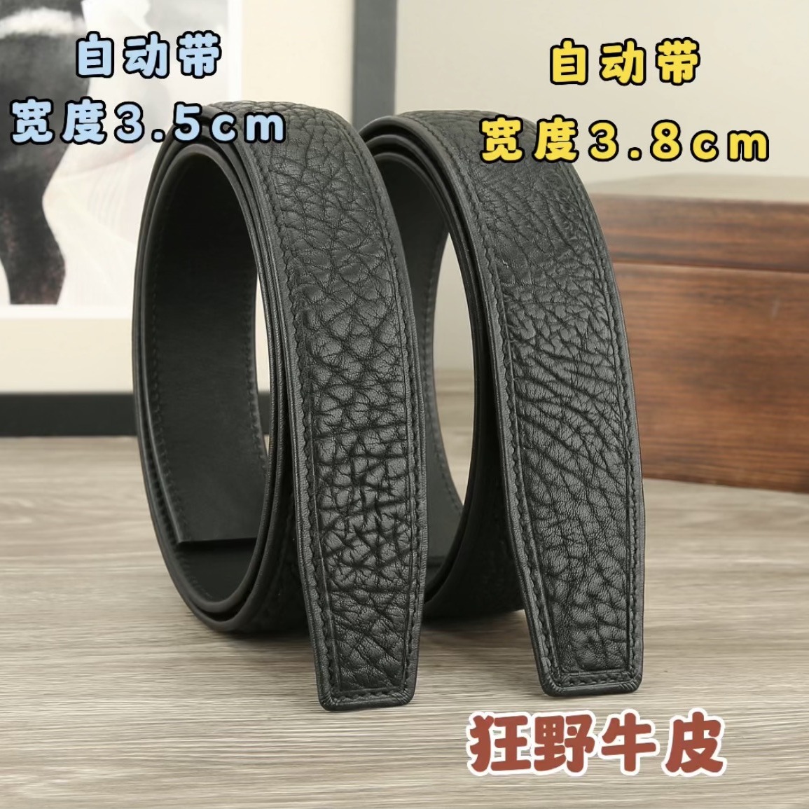 高級狂野牛包縁男性ベルト自動トップ階牛革ビジネスカジュアル3.8cm