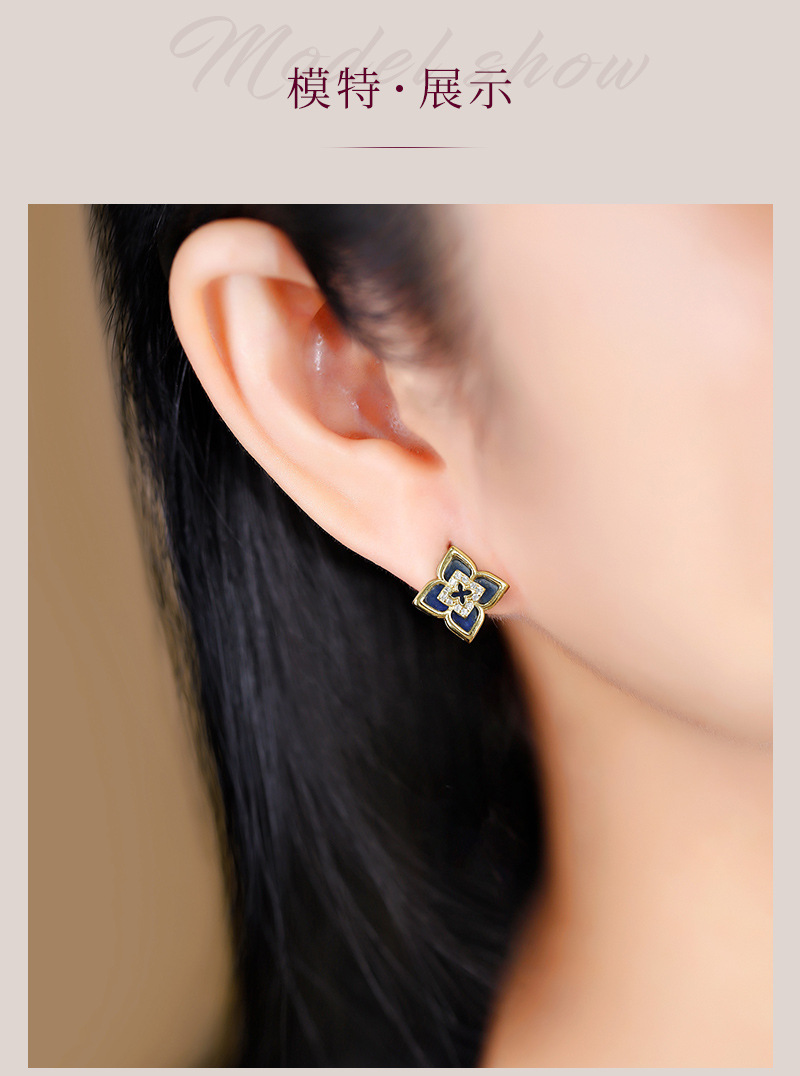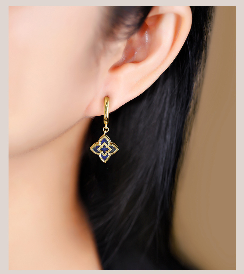 S925銀金メッキは青金石耳飾りピアスリングセット星幸運星四葉草復古透かし