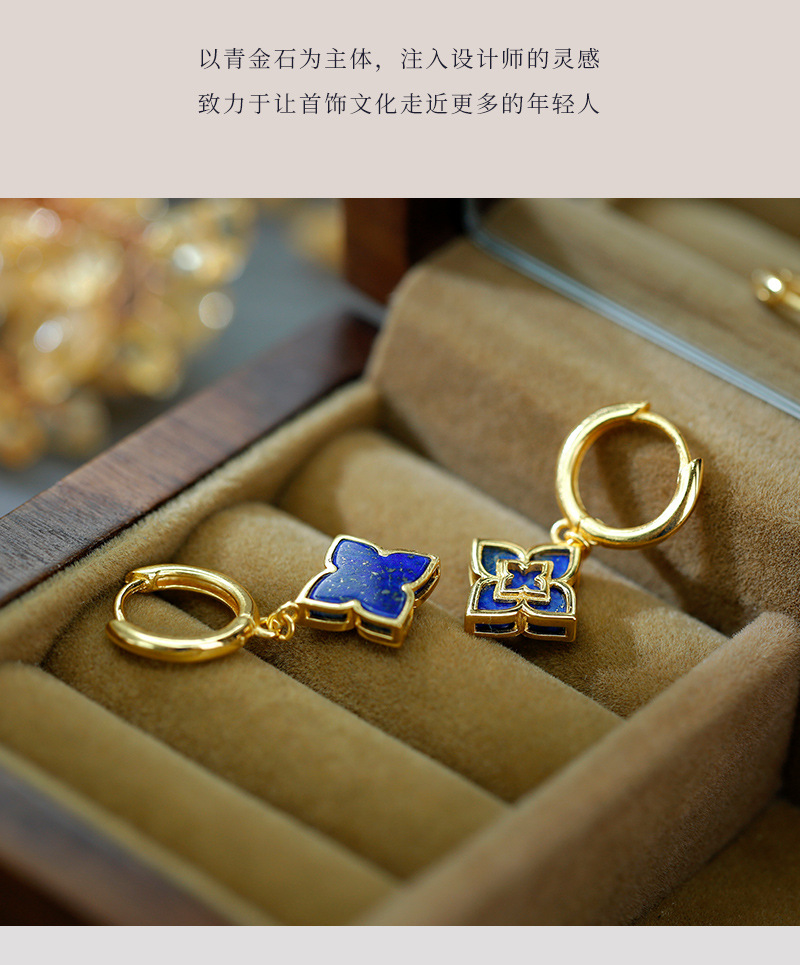 S925銀は青金石ヒョウタンのピアスをはめ込んでいます。