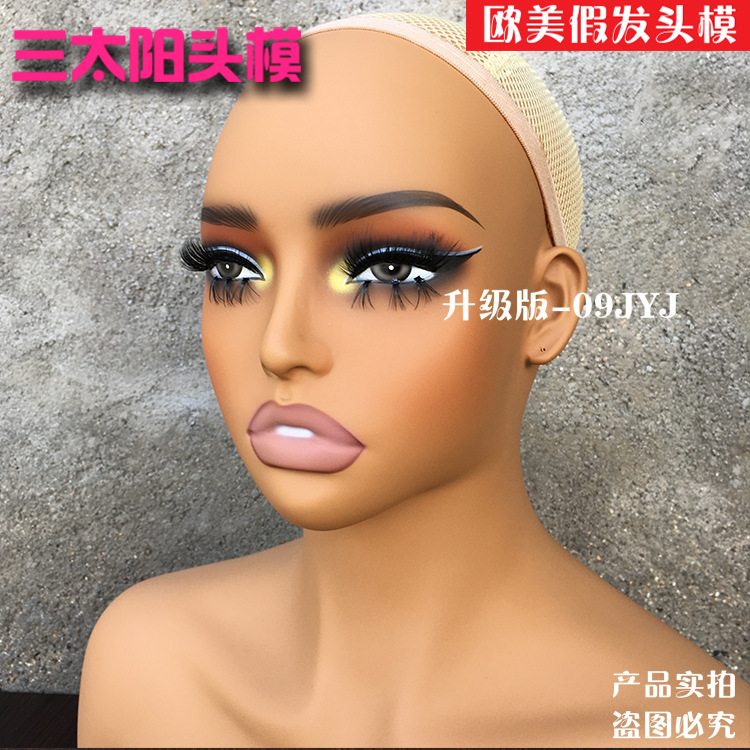 | 欧美黄肤色女头模假发头模双肩假人头耳环项链展示支架半身模型头 | |