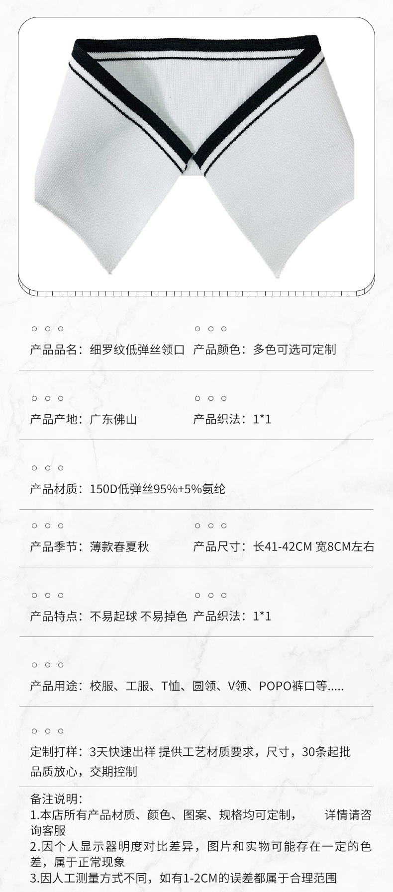 【古典的な白黒条】低弾性糸羅紋平機襟ねじ襟春夏tシャツ襟元袖口