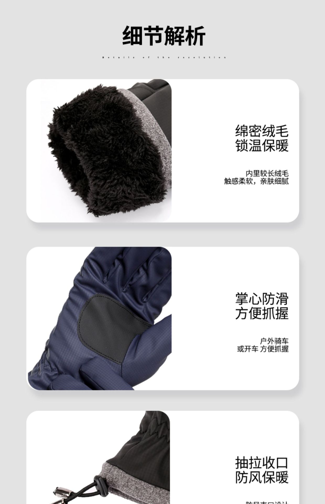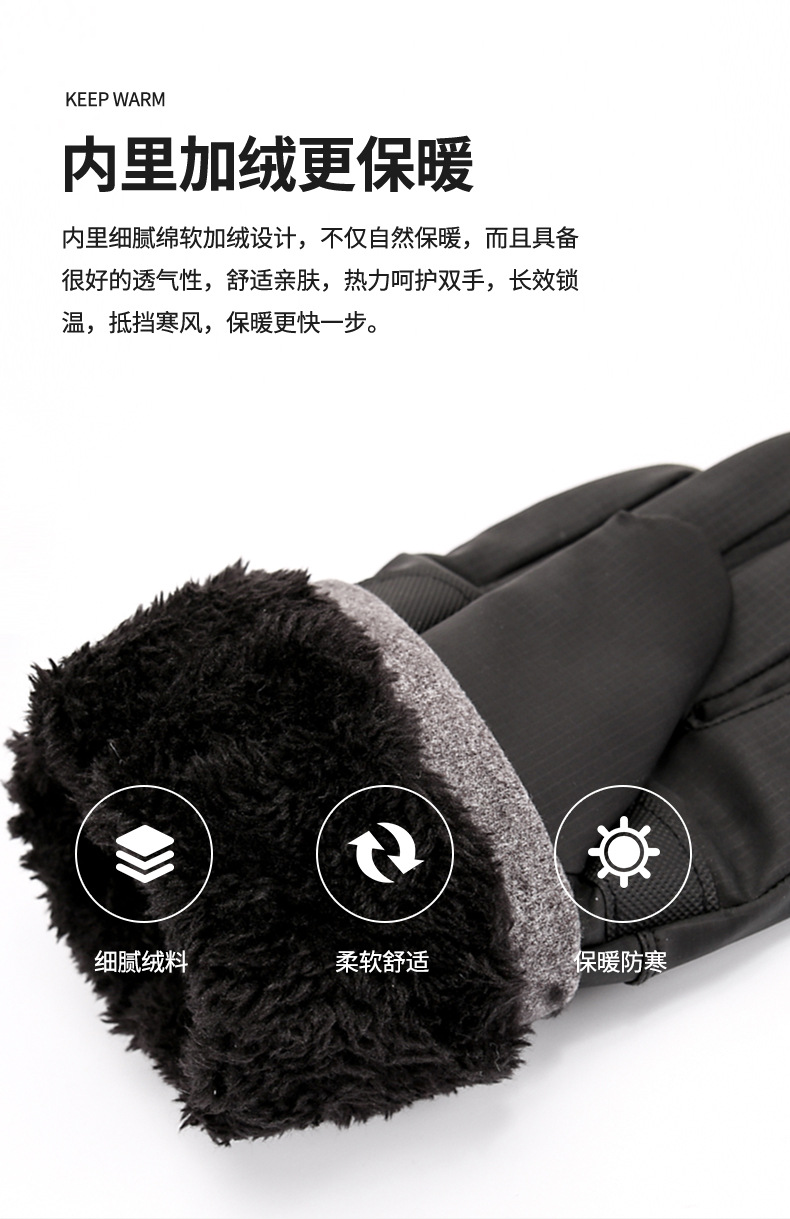 男性冬防水手袋ベルベット秋冬学生スポーツレジャー自転車保温防風電気自動車防寒
