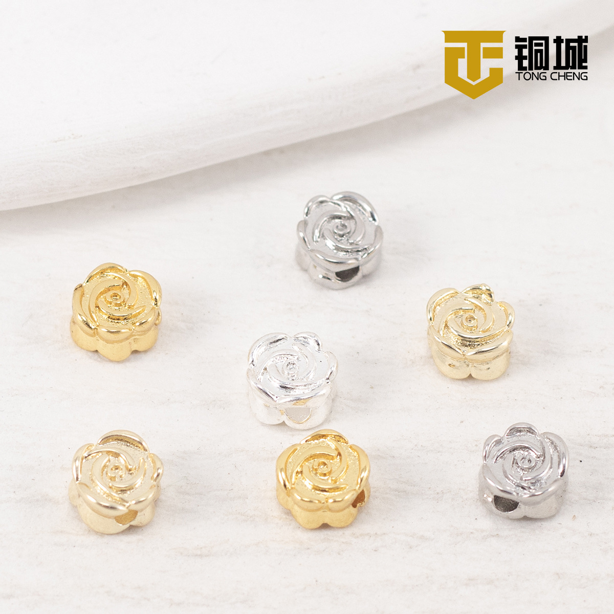 14k包みの金の保色のバラの花のビーズの手作りのdiyのビーズの銅の金メッキのブレスレットの部品のアクセサリーのネックレスのビーズ
