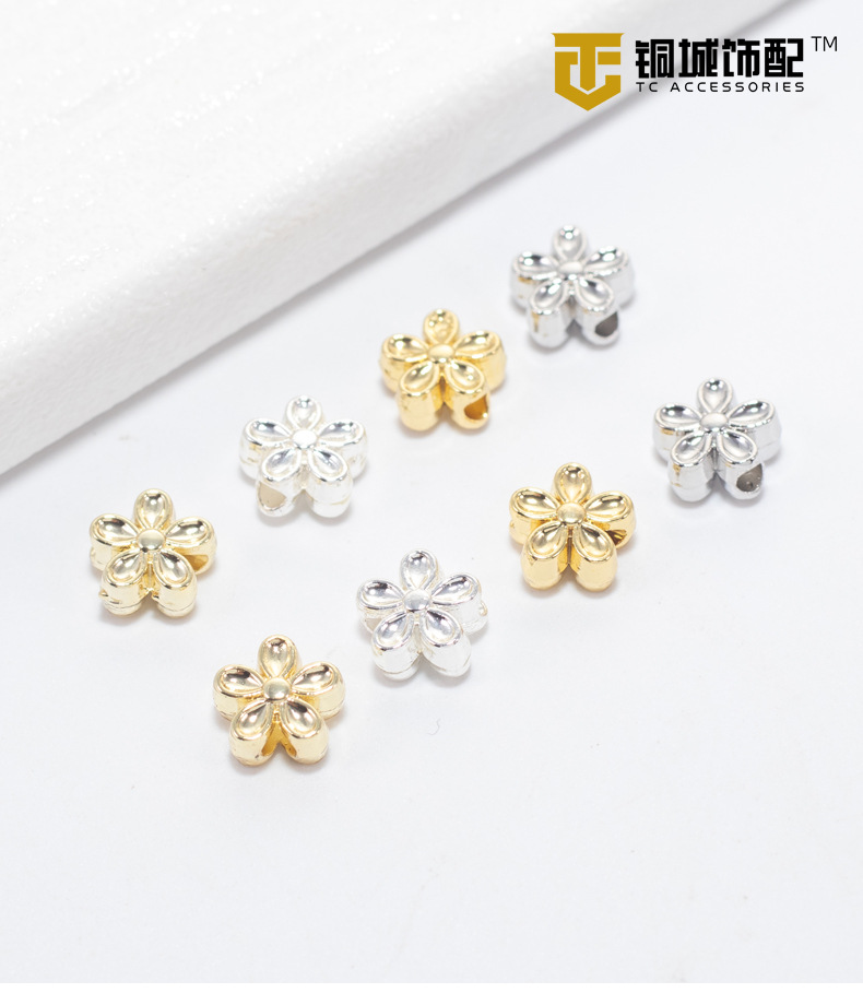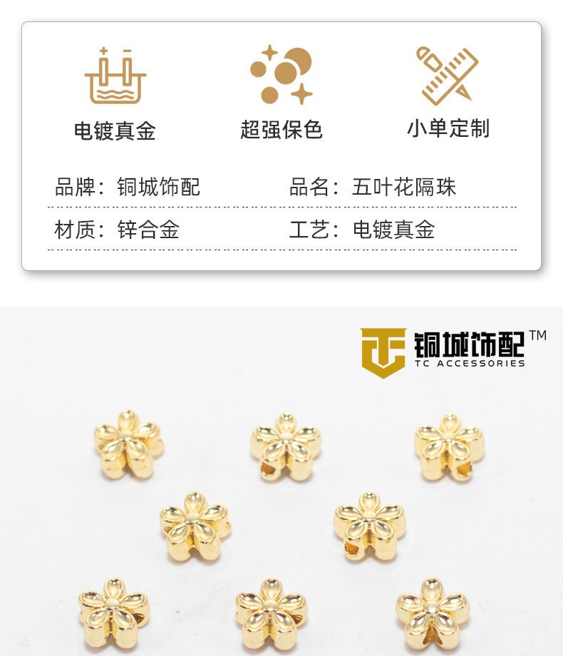 真 � � メッキ14k包み金五叶花隔珠高保色ブレスレットビーズdiy手作りネックレス立体桃花アクセサリー