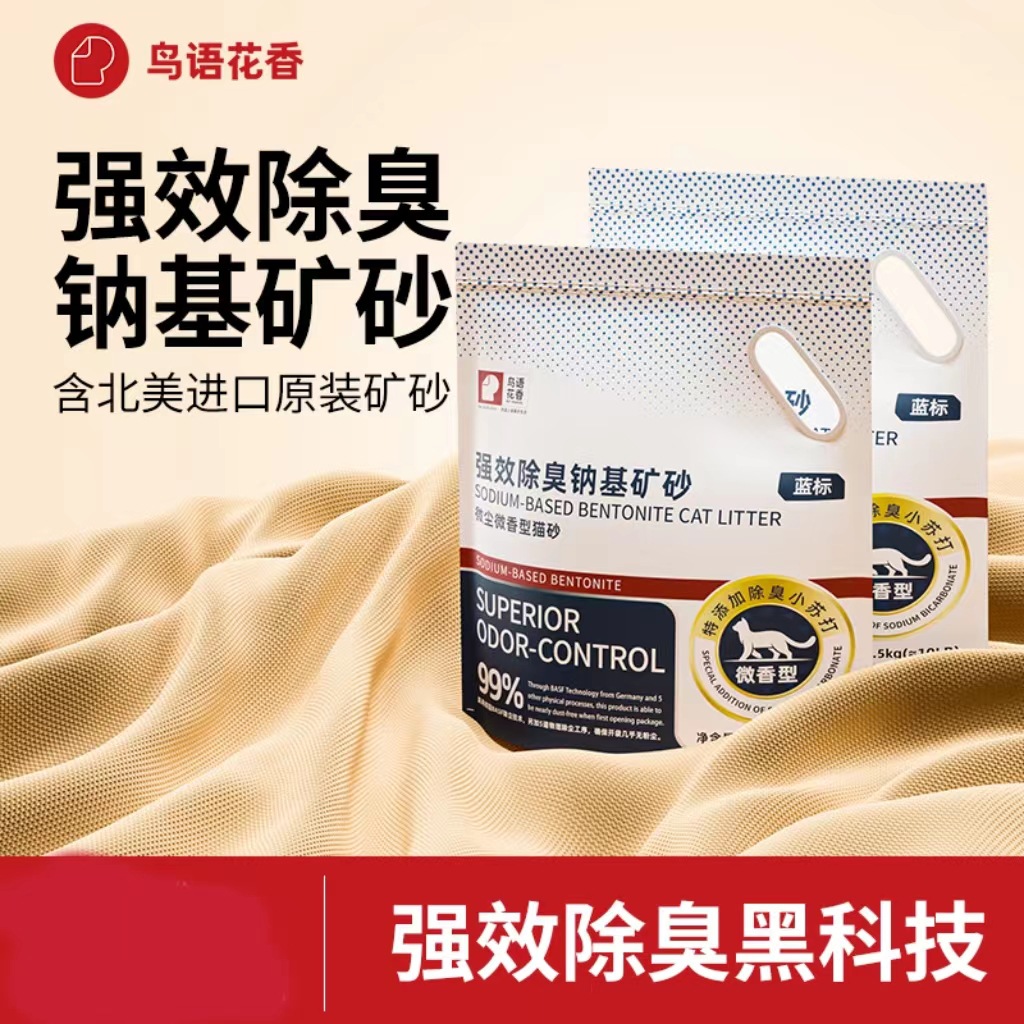 鳥の花の香りの青い標準の脱臭ナトリウム基のベントナイトの猫の砂の4.5kgの低い塵のコストパフォーマンスの鉱砂の猫の用品