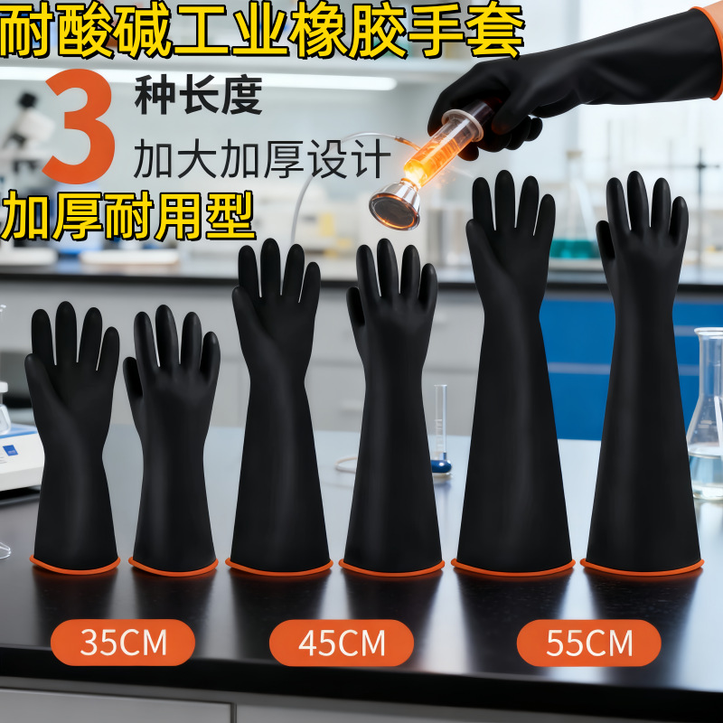 黑色工业橡胶耐酸碱手套加厚耐磨化工业耐溶剂防腐蚀劳保皱纹防滑