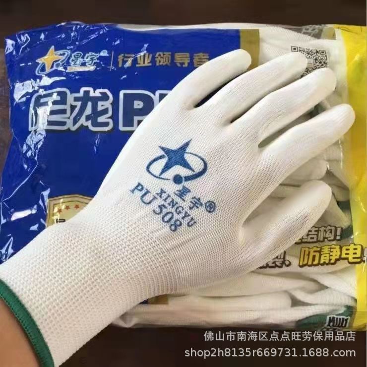 星宇pu508pu518は掌浸ゴム耐摩耗ナイロン労働保護手袋の静電気防止包装が柔軟で通気性が薄い