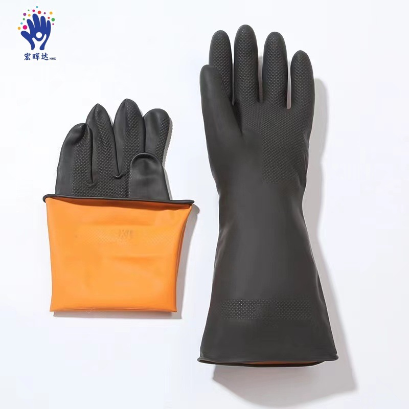 耐酸性・耐アルカリ性、厚手・長袖、黒色ゴム製、耐腐食・防水ラテックス労働保護工業用手袋、耐摩耗性