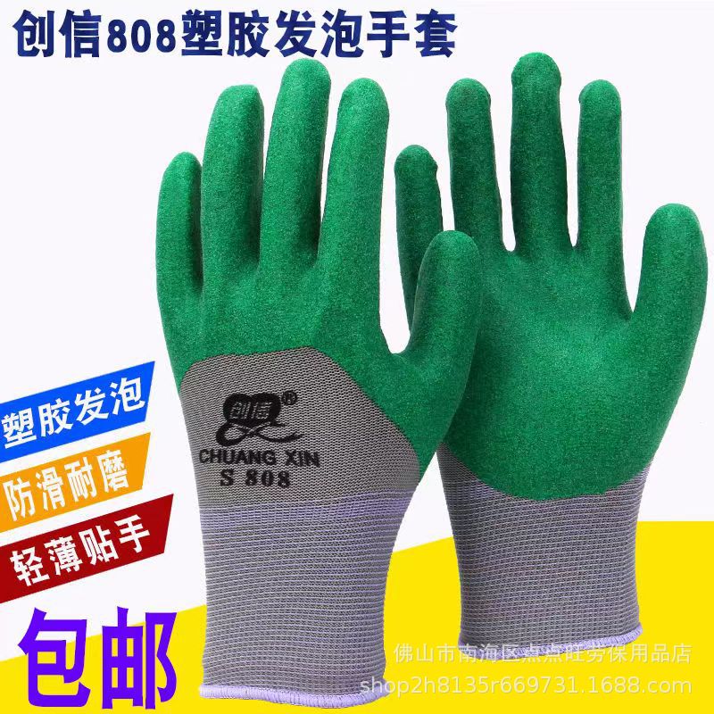 創信S838-S808プラスチック発泡半掛ゴム耐摩耗性酸アルカリ防油滑り止め工事現場労働保護手袋