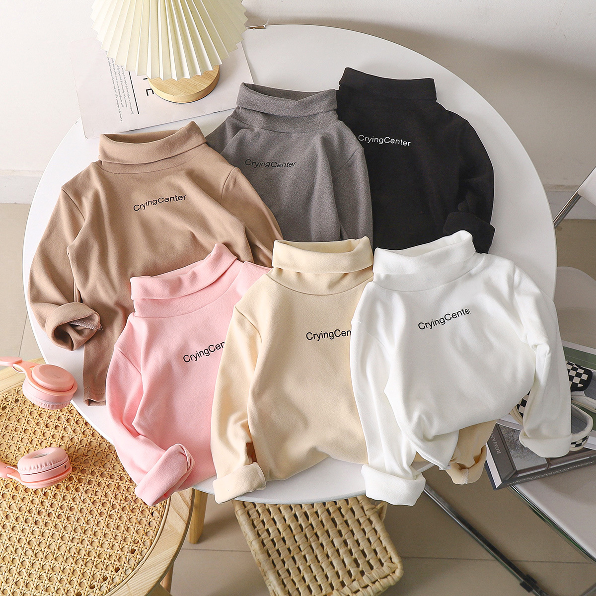 子供用高襟スウェット2024秋冬の新型男児の女の子にベルベットをつけて保温したスウェットの子供のシャツを厚くする
