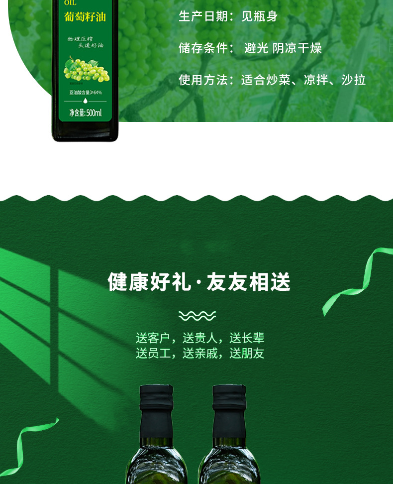 葡萄籽油食用纯正一级冷压榨葡萄油富含亚油酸植物油厂家直销