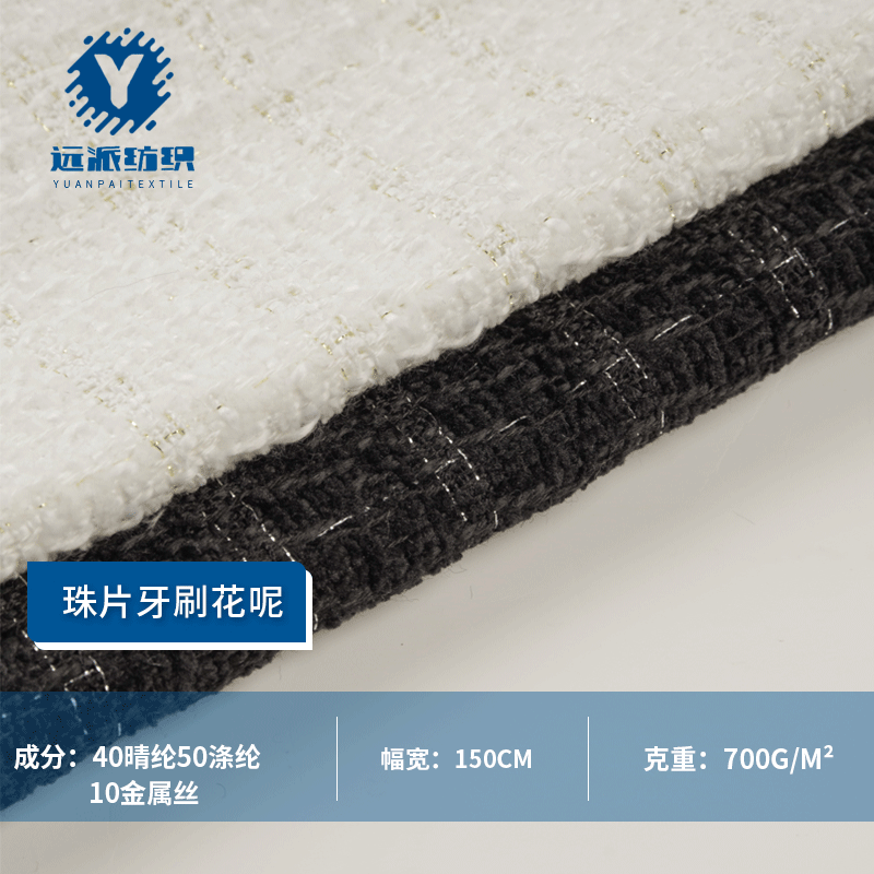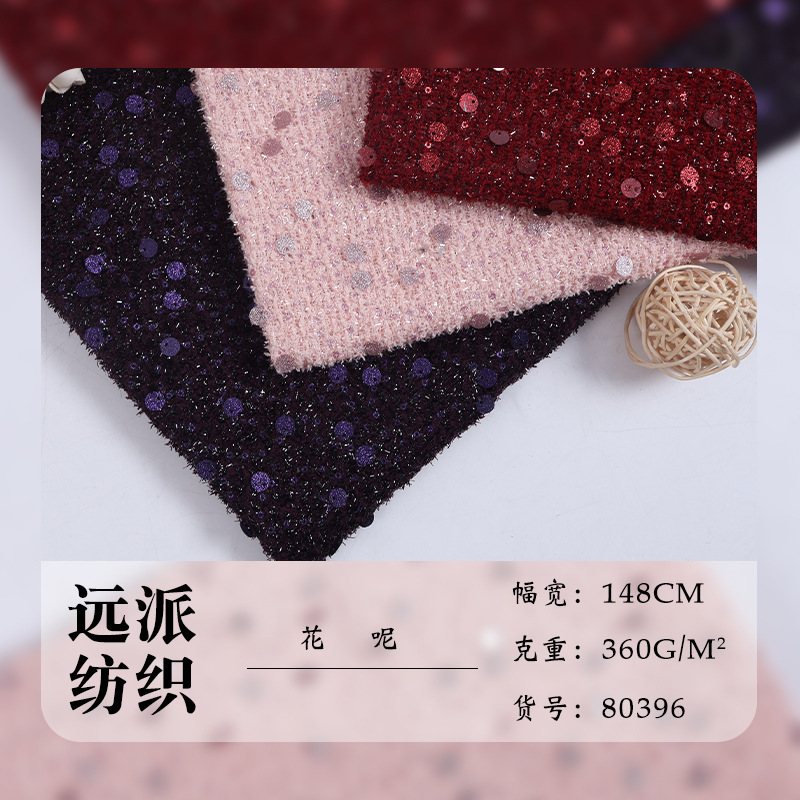 现货涤纶毛呢面料亮片小香风布料服装外套箱包手工diy花呢面料