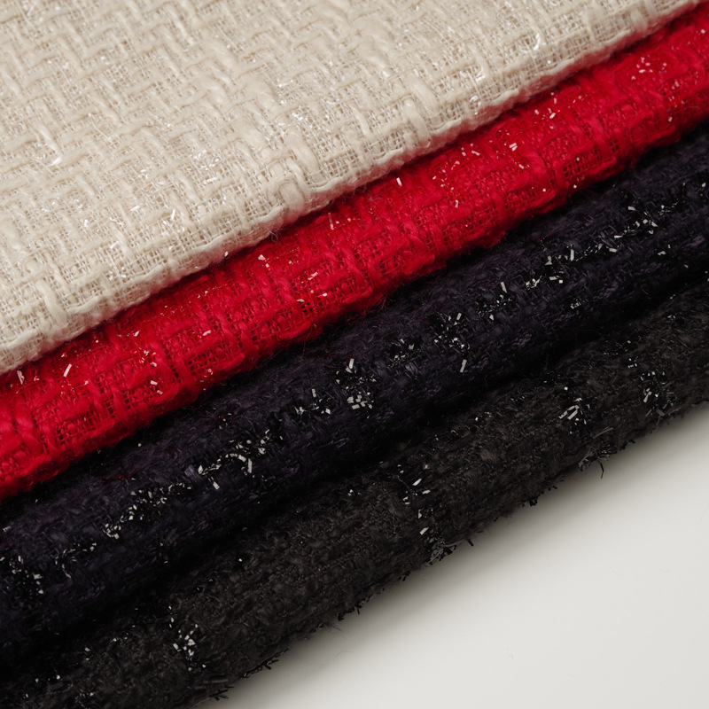 小香風生地補助材料とスパンコール粗織ニットウール細格紋生地秋冬女装コートコート