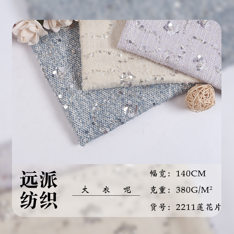 现货莲花片亮片小香风面料秋冬时尚外套女装鞋帽箱包装毛呢布料