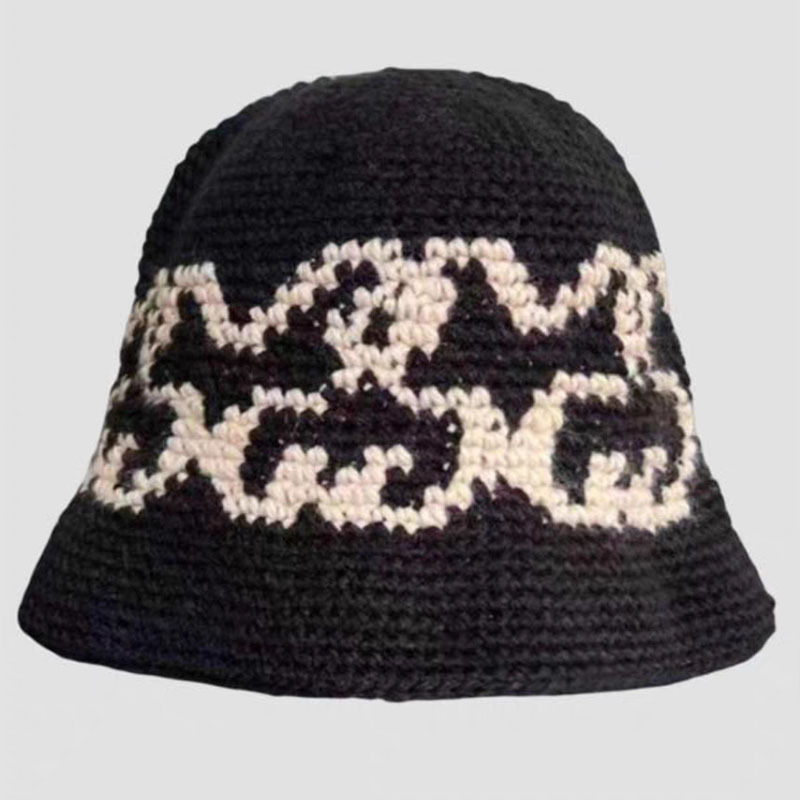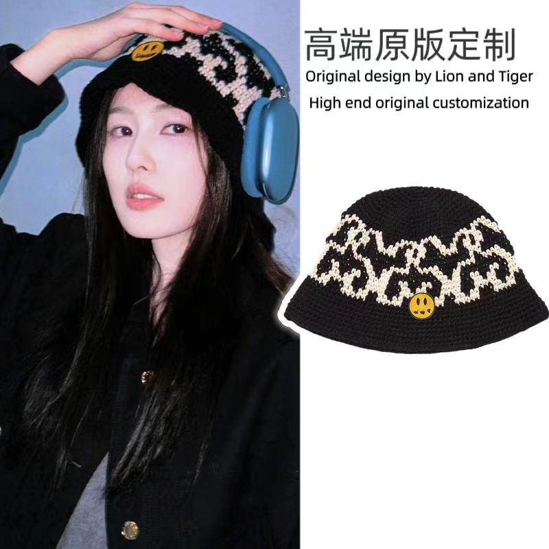 アメリカの手作り鉤織ジャカード漁師帽女性笑顔布貼り毛糸帽秋冬保温盆帽ヒップホップ冷帽男