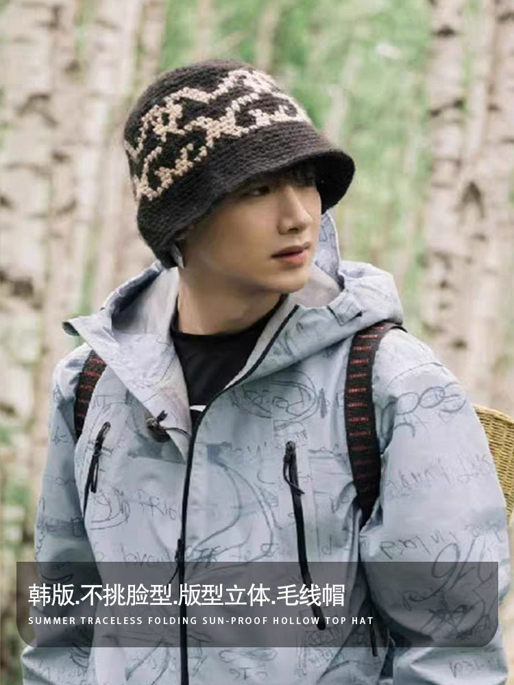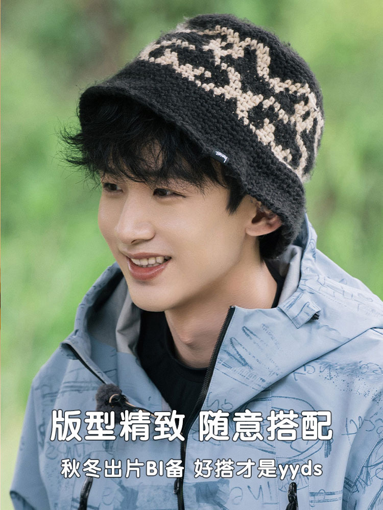 白敬亭同タイプの純粋な手織りジャカード冬帽冷帽漁師鉢植えの帽子