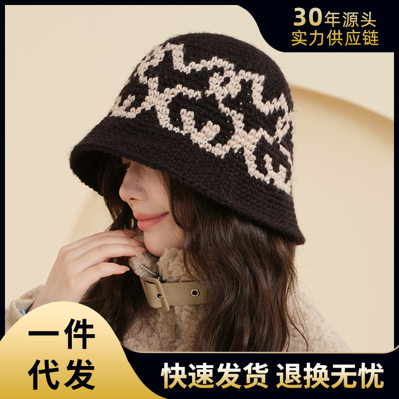 秋冬百合ニット漁師帽女子韓系insファッション保温毛糸盆帽復古文芸バケツ帽