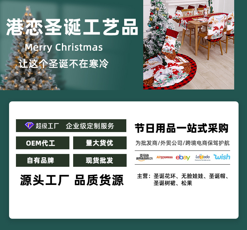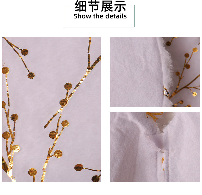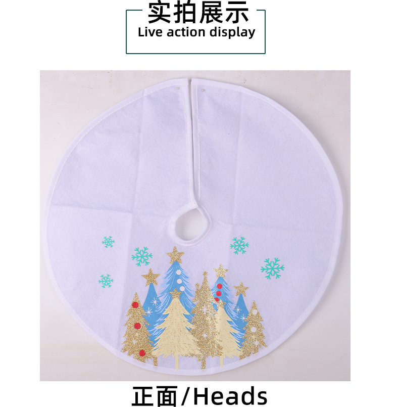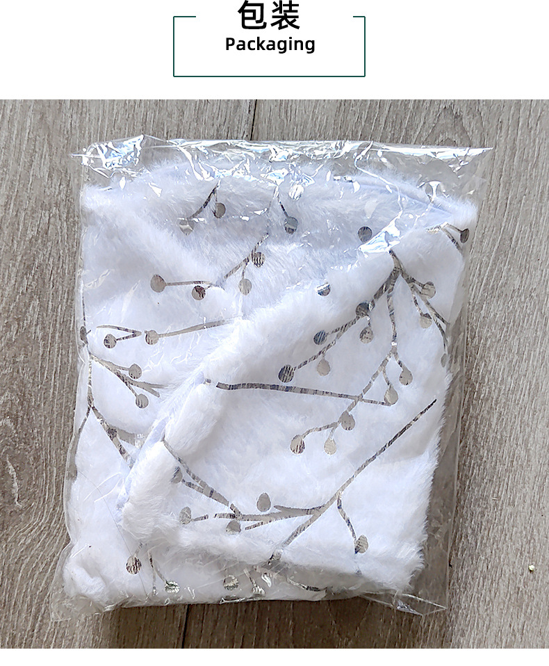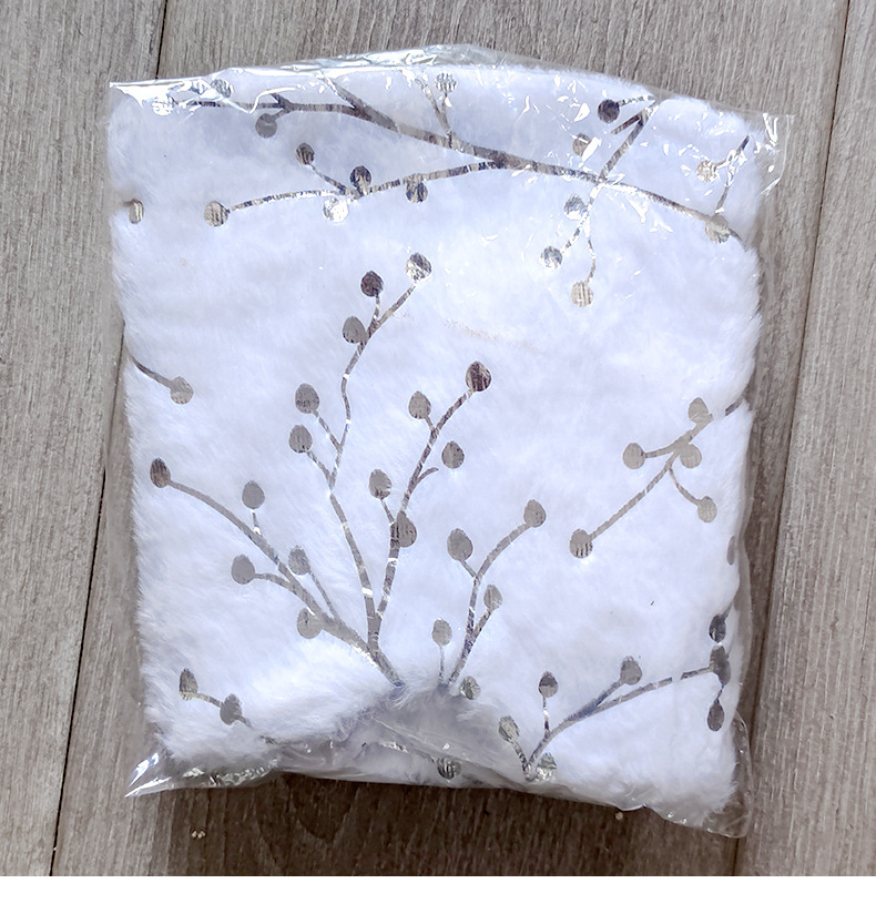 跨境新款圣诞金银小号树裙烫金印白色仿兔短毛绒圣诞树底装饰品