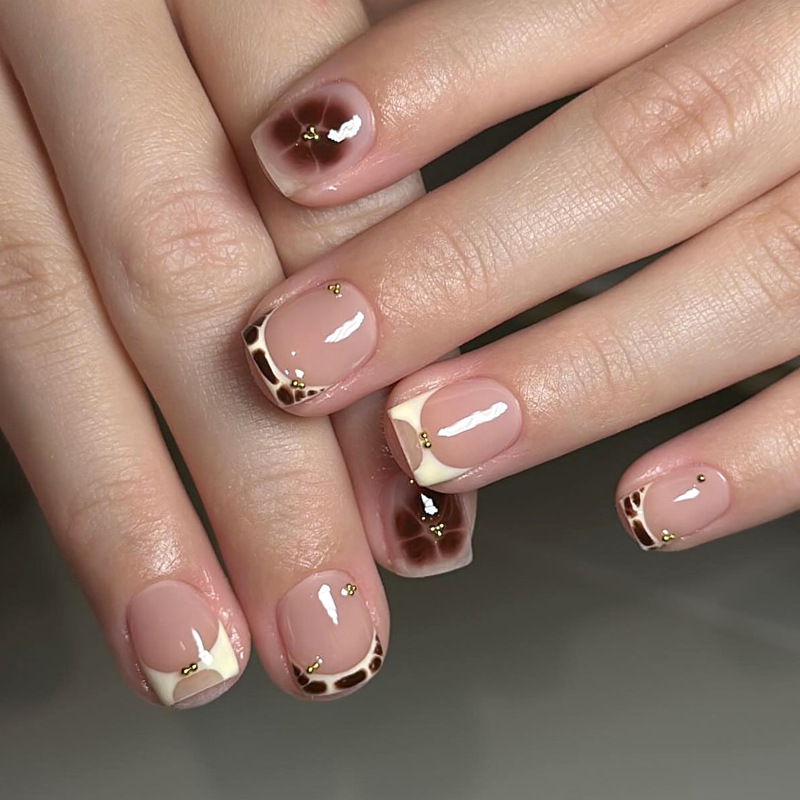 穿戴甲短款24片欧美跨境爆款法式金珠豹纹假指甲可拆卸甲片nails