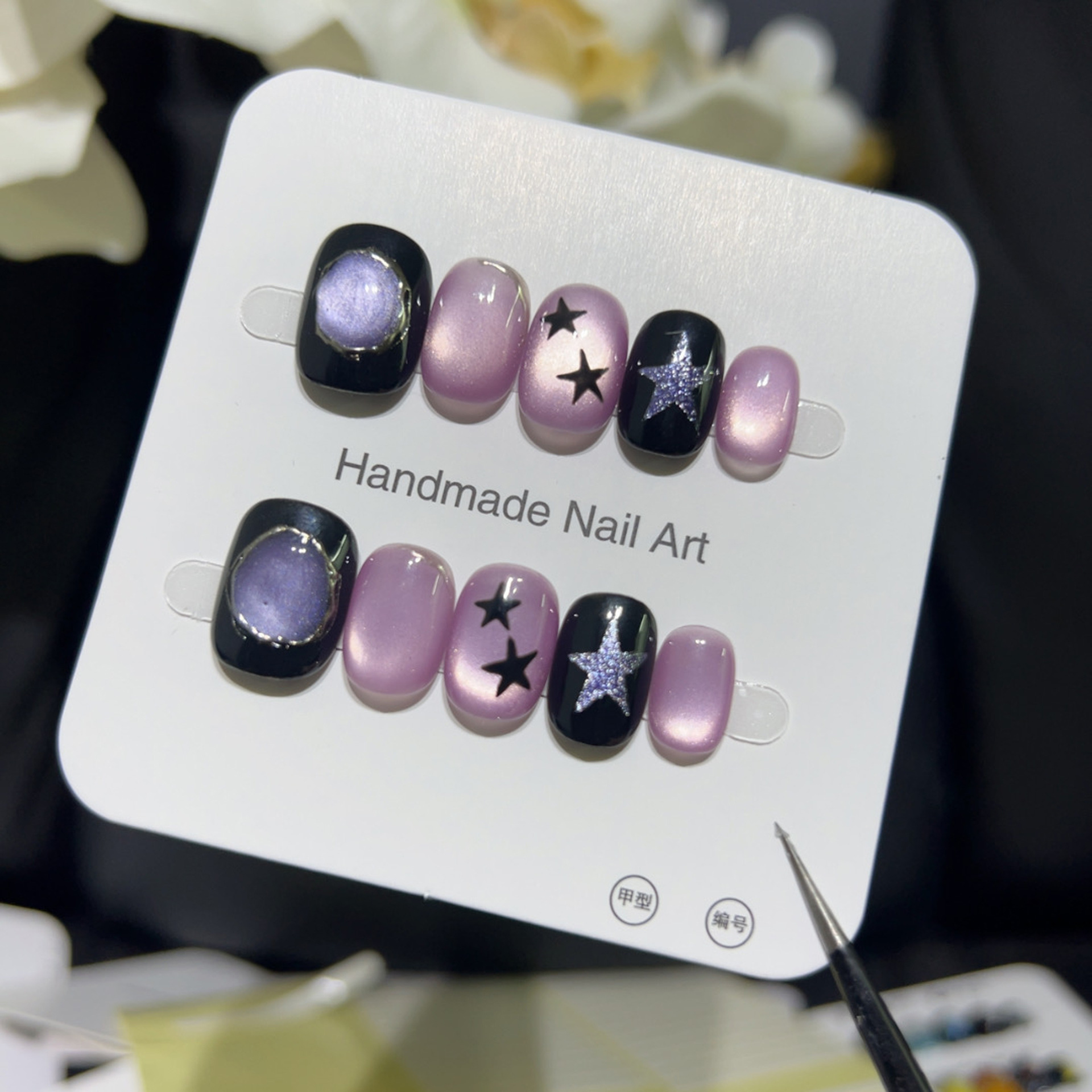[パープルスター] ファンタジーパープルキャットアイネイルアートパッチスターエレメント甘くてクールなスタイル美白手作りウェアラブルマニキュア