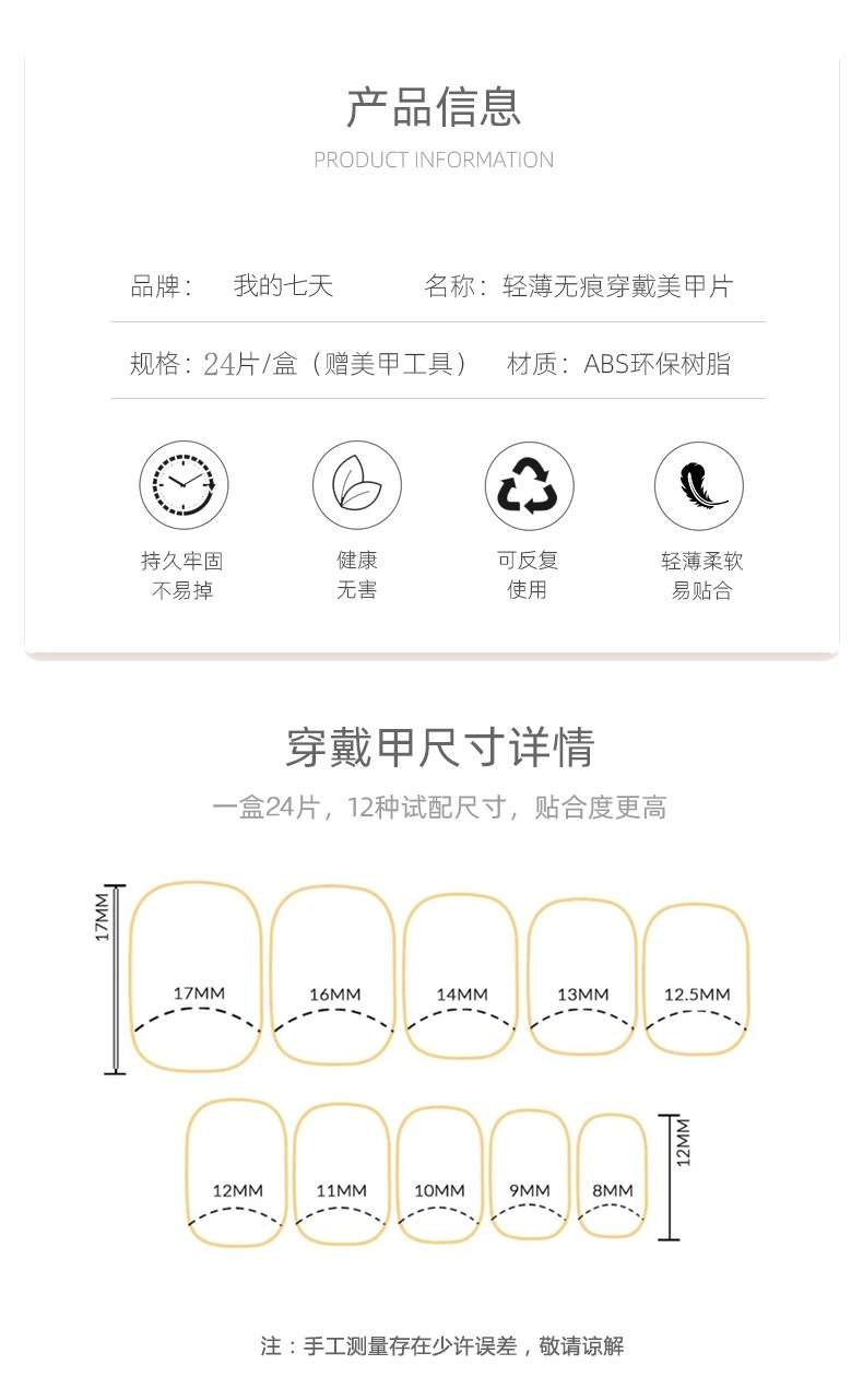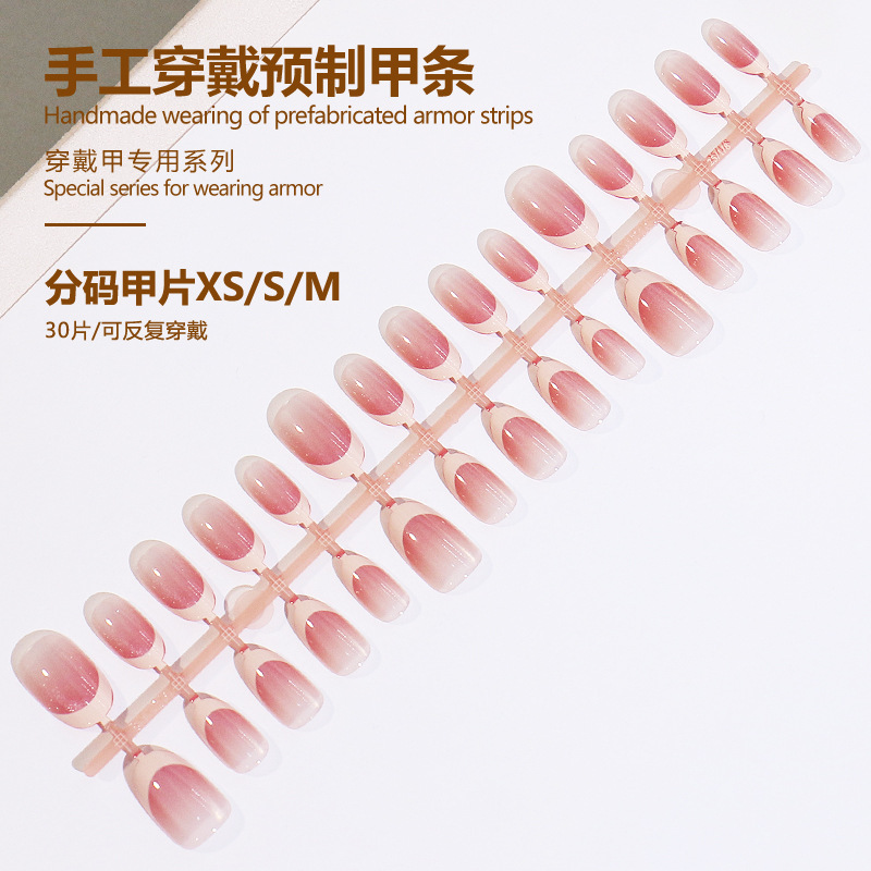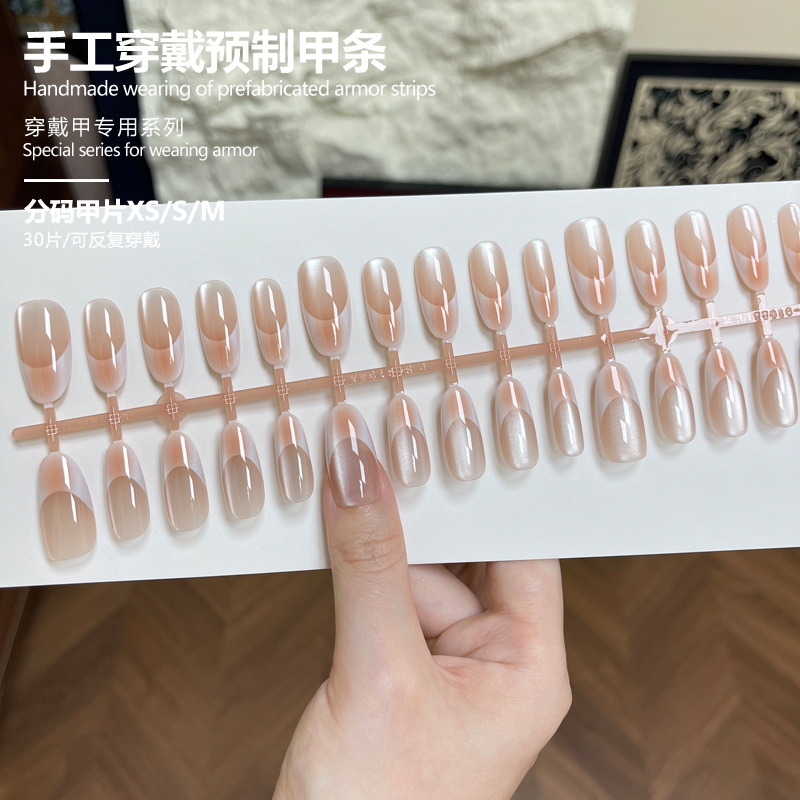 美甲穿戴甲ins裸透渐变椭圆形法式美甲简约裸粉珠光细闪指甲贴片