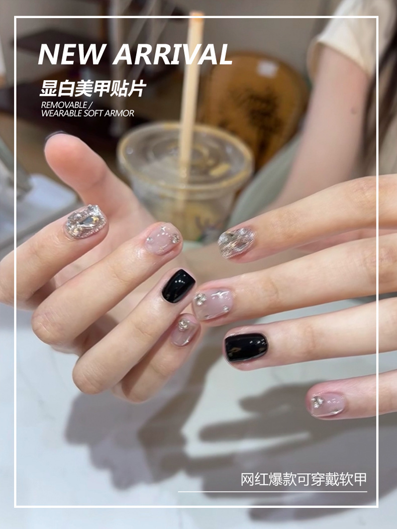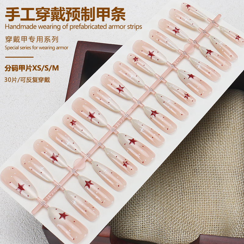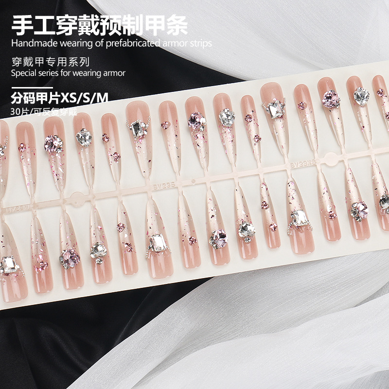 手工穿戴甲预制甲条4.0长水滴闪粉钻饰分码30片可重复穿戴美甲片