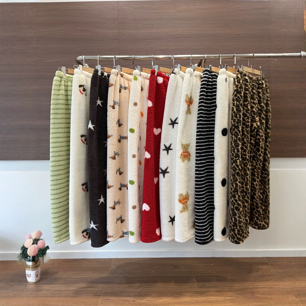 鴻楠2024冬にベルベットの厚い保温豹紋直筒が腰を緩めて広い脚の寝ズボンを家で着ることができる
