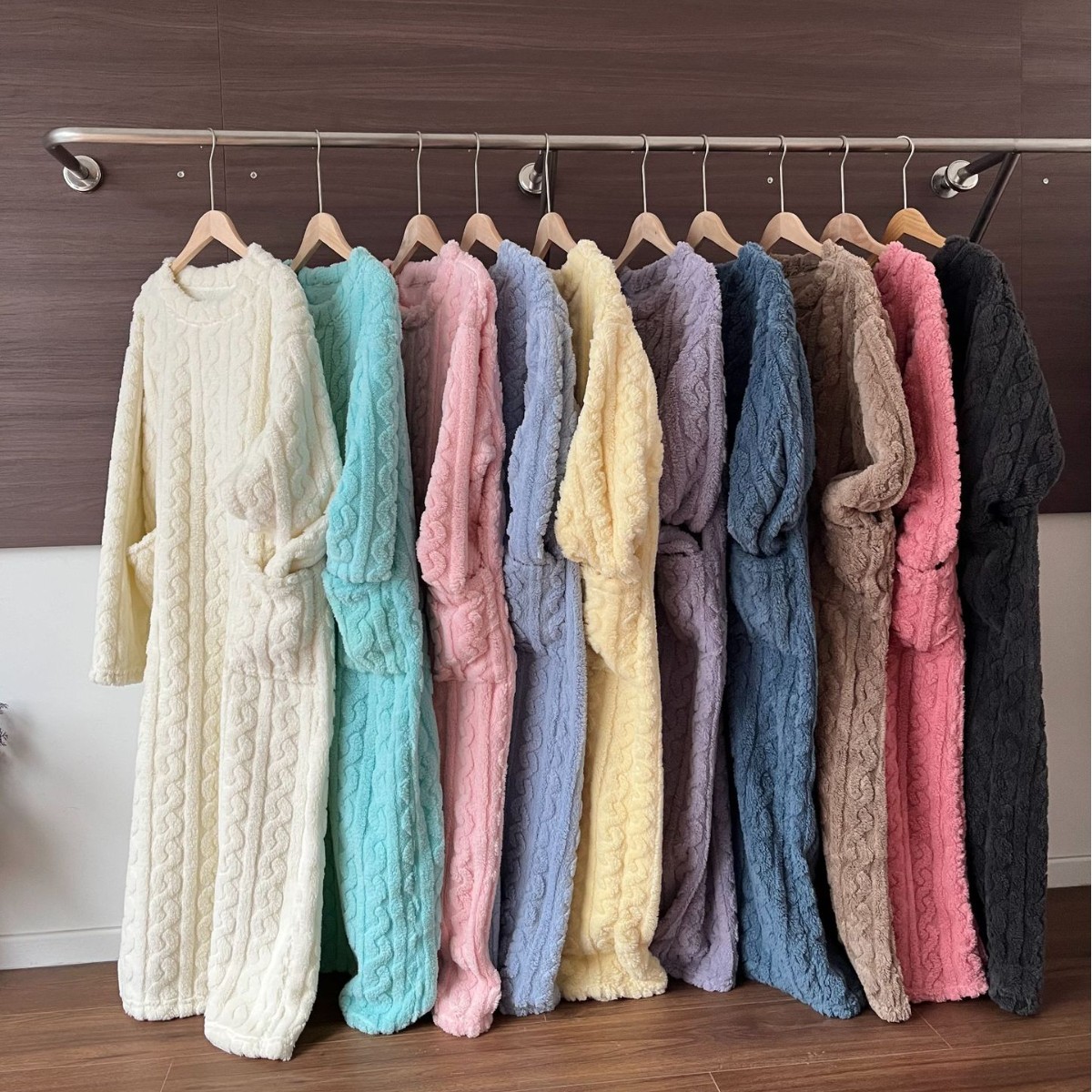 【原创实拍】行走的大被子珊瑚绒提花睡袍冬季睡衣保暖居家服睡裙