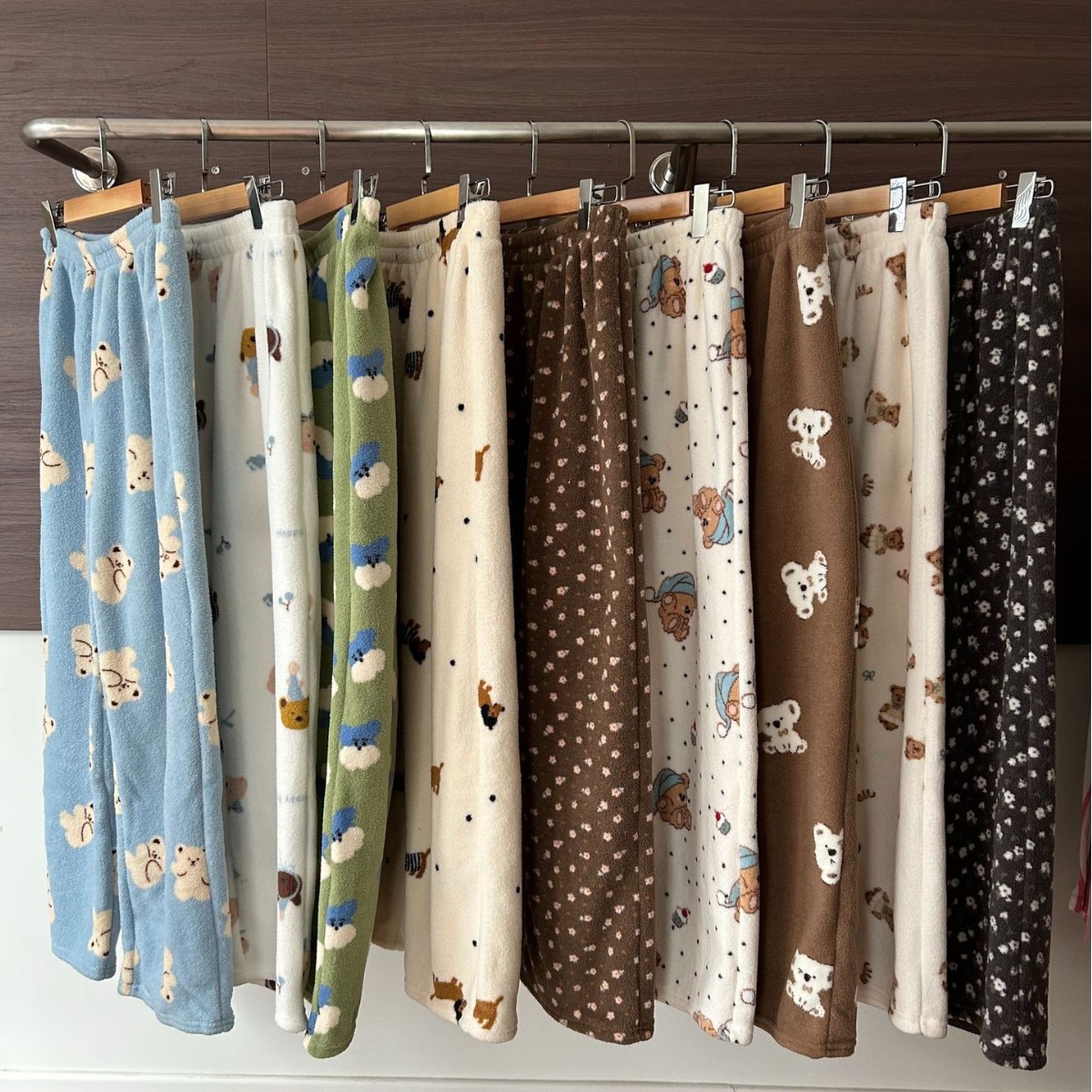 2025冬季雪粒绒加厚保暖松紧腰碎花可爱宽松睡裤居家裤子可外穿