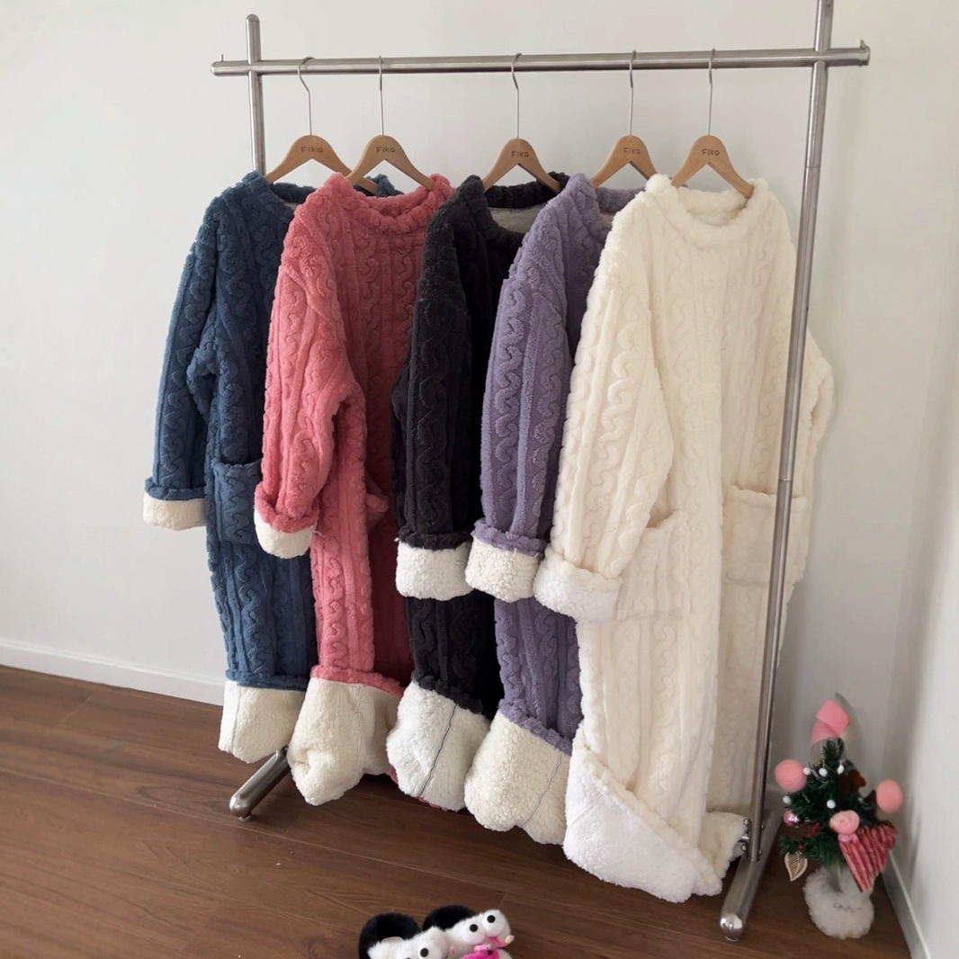 【三件套】实拍加加加厚睡袍家居服毛绒宽松舒适保暖睡衣纯色套装