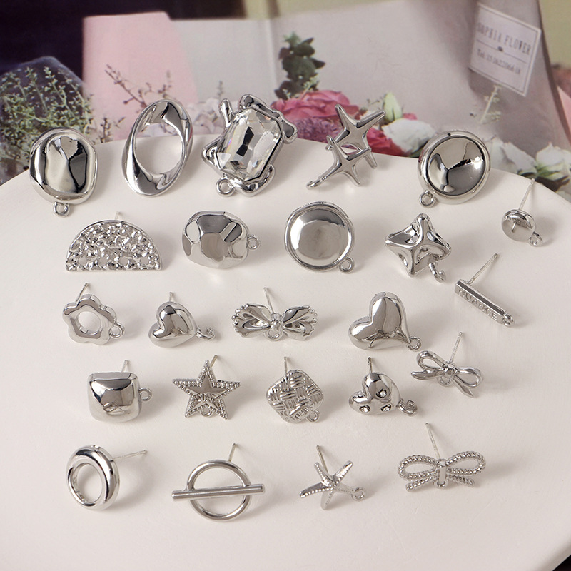 個性的なパンク風の愛の蝶結びの光沢面の不規則なドリルの合金は銀の針のdiyのイヤリングの部品をまねます。