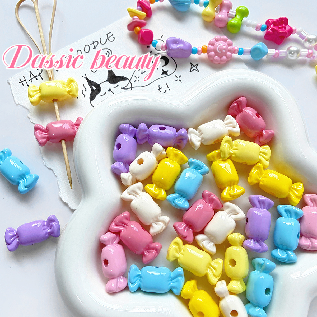 彩色多巴胺色系扭扭糖果散珠串珠diy手机链挂件钥匙扣小饰品配件