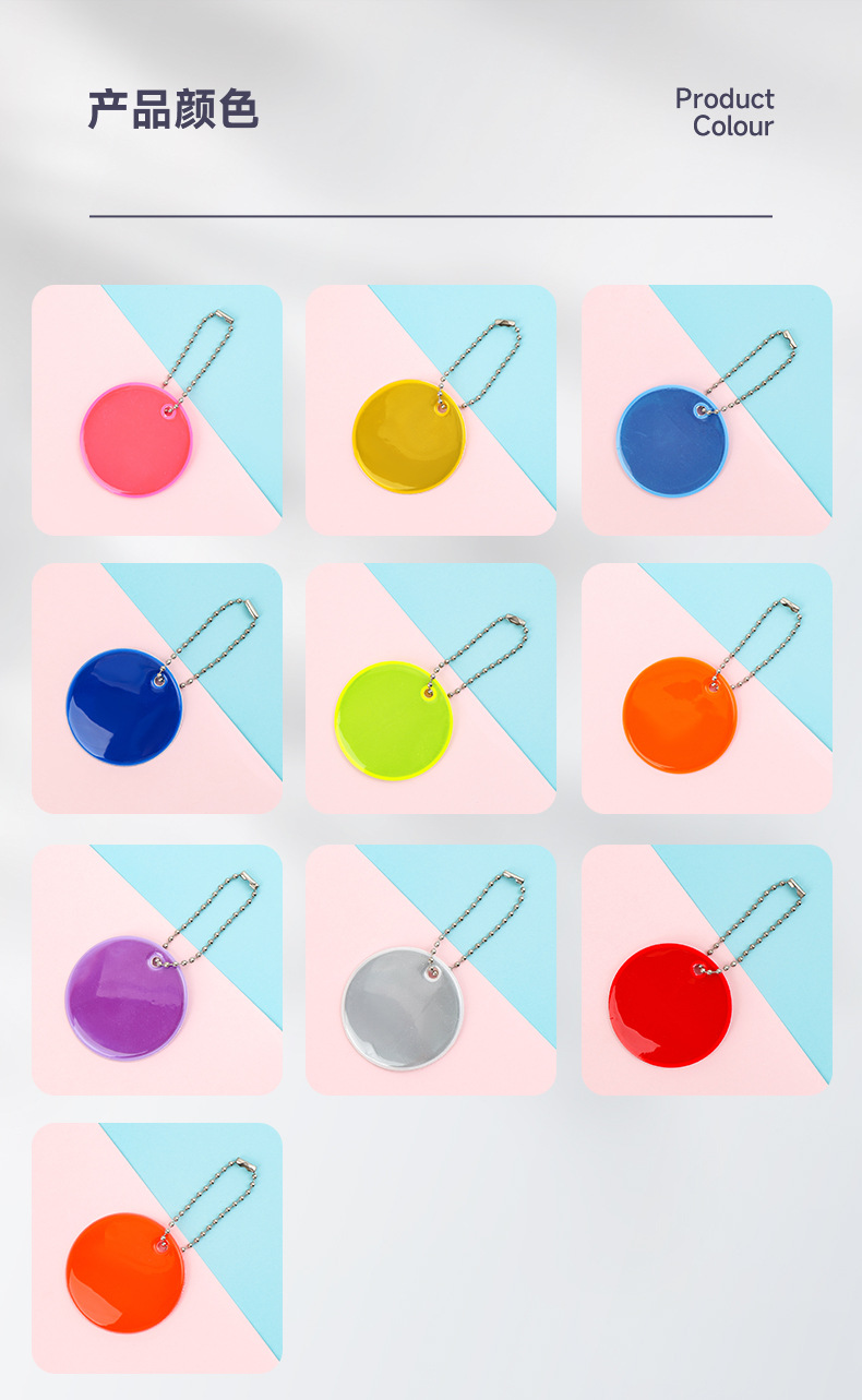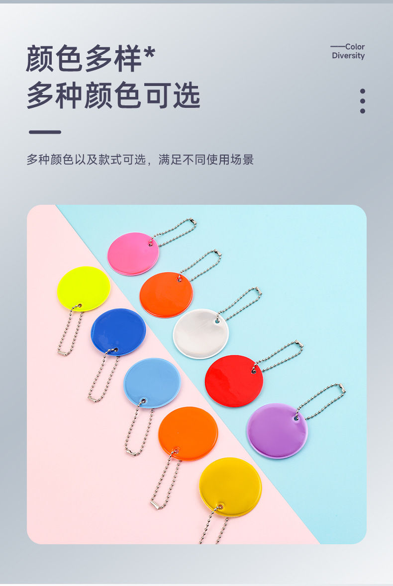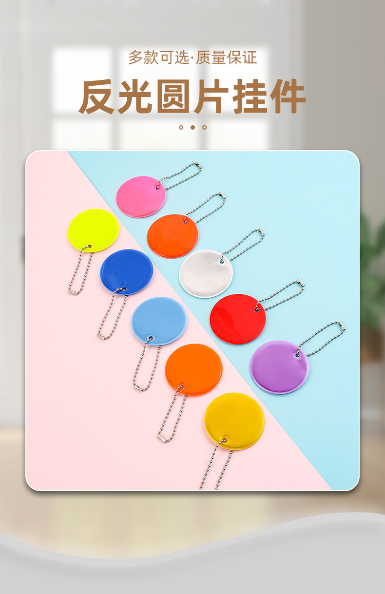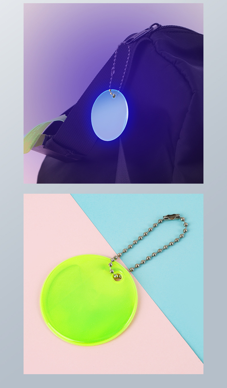 跨境PVC反光圆形挂件定制logo吊坠挂饰钥匙扣5cm箱包饰品夜间警示