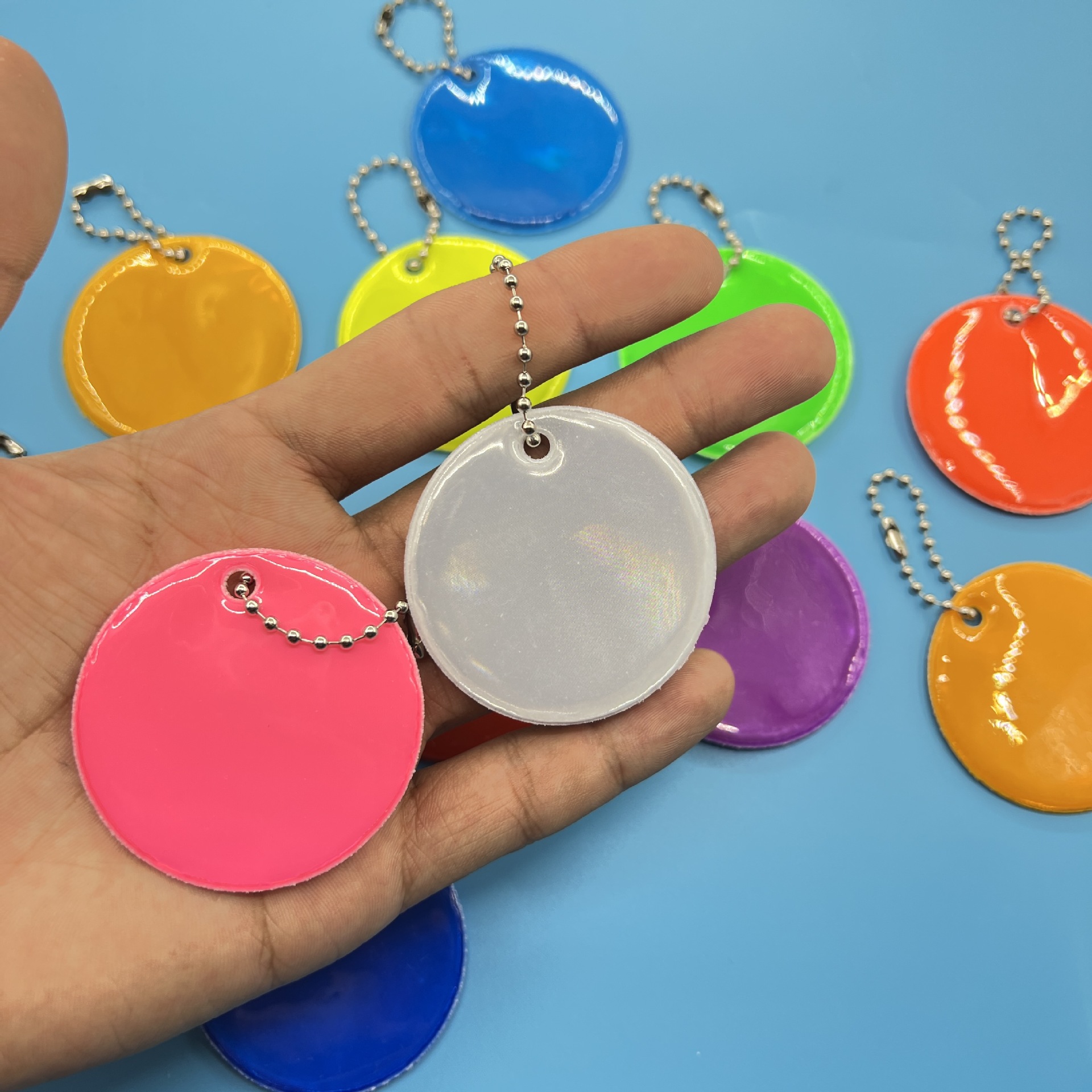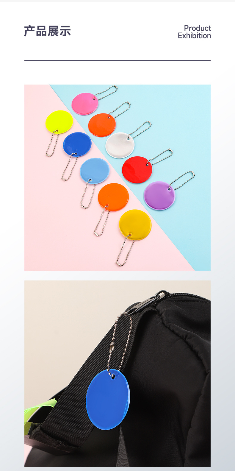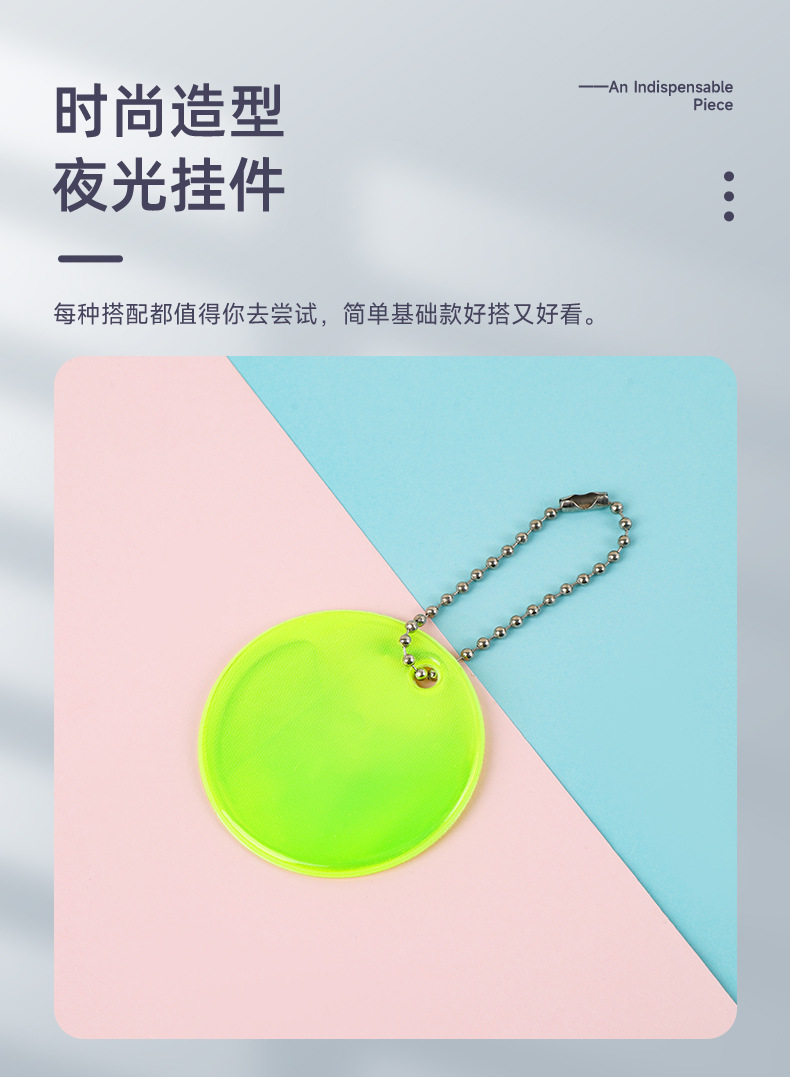 跨境PVC反光圆形挂件定制logo吊坠挂饰钥匙扣5cm箱包饰品夜间警示