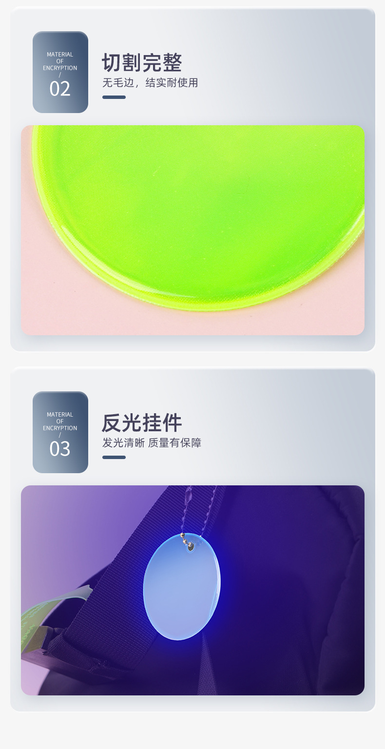 丸型反射ペンダント 学生用バッグ用リボンペンダント 自転車用反射ペンダント PVC両面警告ペンダント